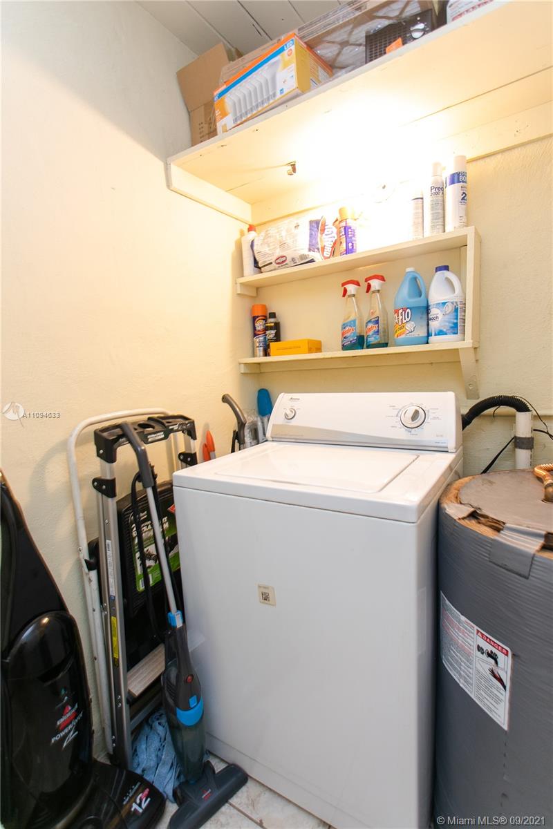 This is a 2/1+ Den house with kitchen; stainless appliances such as refrigerator, stove, microwave, hot water heater, washer & dryer; new central A/C; new roof! Freshly painted throughout the whole house, Hurricane shutters. Tile floors throughout. Great location. Wonderful starter home.