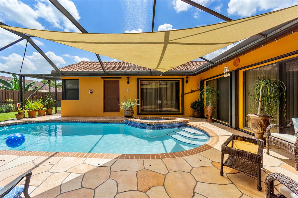 Beautifully updated and immaculately kept home, located in the highly desirable Oakbrook neighborhood. This 4 Bed, 2 Bath home boasts a bright & spacious split floor plan with large, open kitchen that has been tastefully updated. Tile throughout the living space and the bedrooms. Master bedroom features a stunning en-suite bathroom with separate walkin shower and roman tub, stylish vanity and walk in closets with cabana access to Screened in pool and patio! Immaculately landscaped backyard w/ 6ft Privacy Fence for enjoying and entertaining. Impact windows + Hurricane protected doors and Garage Door. Generator hookup. Laundry room inside. 2 Car garage, New Barrel Tile Roof 2007 and A/C in 2018. Furnishing's negotiable!