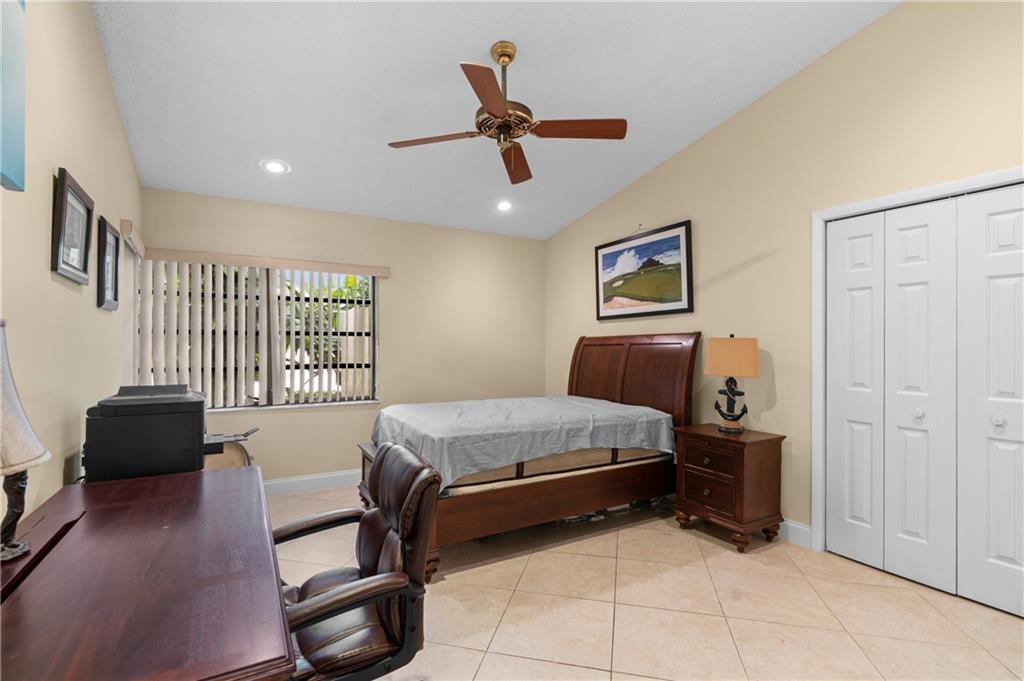 A beautiful Boca Woods Country Club home in a fabulous location. Walk to the club, wonderful view along the 15th fairway of the Woods course. Large living area with vaulted ceilings and wet bar, great for entertaining. Recent bathroom, half bath and laundry room renovation. Roof replaced 2010, ACs and water heater 2016 and 2017. Lovely kitchen with stainless steel appliances and granite counter tops. New diamond brite and deck jets in the pool, updated security system and cameras. Club renovation is almost complete, welcome to paradise! Two 18 hole championship golf courses. New gym, tennis courts, pickle ball, bocce ball, putting green, chipping and driving range. Mandatory membership necessary.