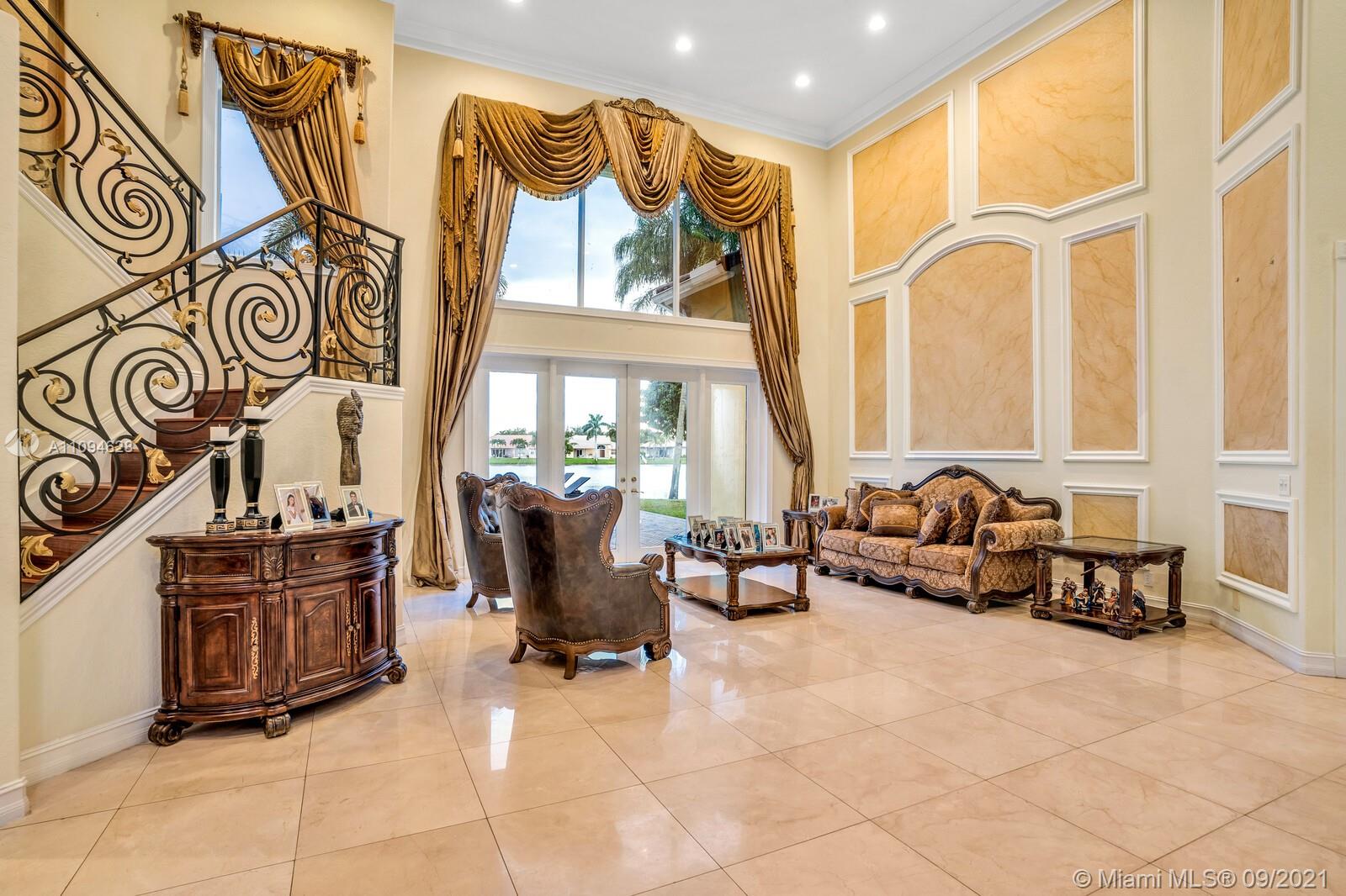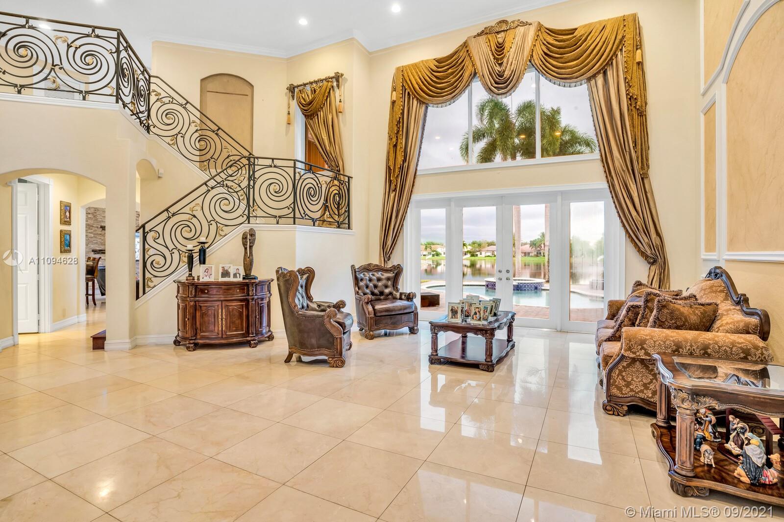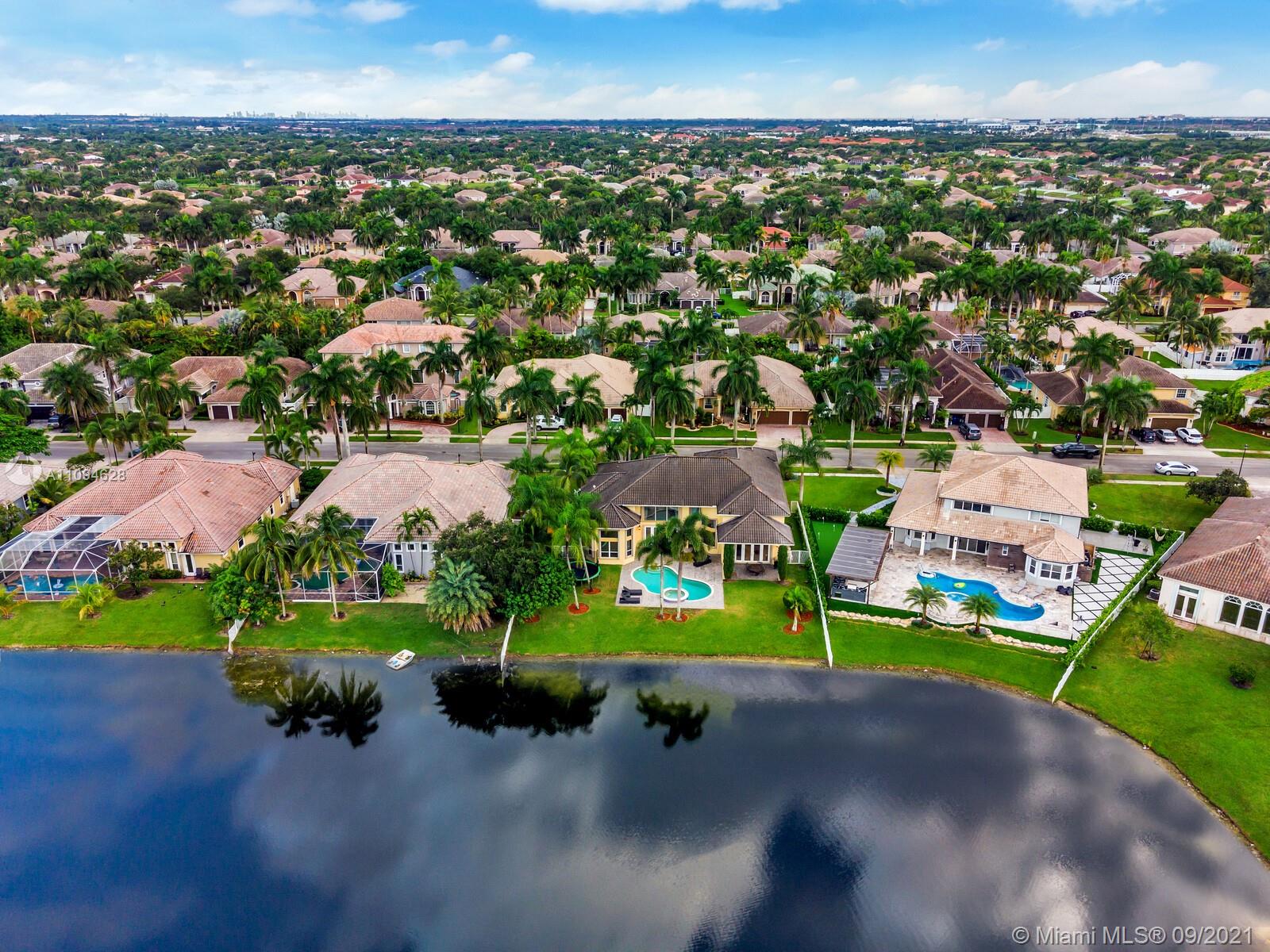 THIS WATERFORD MODEL IN UPSCALE CRYSTAL HARBOUR SITS ON ALMOST 14,000 SQFT LOT ON THE LAKE WITH A POOL, HOME FEATURES A GRAND FOYER WITH MAJESTIC 22 FT SOARING CEILINGS, MARBLE FLOORS, UPGRADED KITCHEN OVEN/MICROWAVE, GRANITE COUNTERTOPS, STAINLESS APPLIANCES, WALK-IN PANTRY. ALLBEDROOMS WITH BUILT-IN CLOSETS.WINDOW TREATMENTS, UPGRADED LAUDRY ROOM, WASHER & DRYER , GARAGE WITH BUILT-IN CABINETS,UPGRADED STAIR CASE, COVERD PATIO,SECURITY SYSTEM,ACCORDIAN HURRICANE SHUTTERS, AND SO MUCH MORE,MASTER SUITE PLUS 1 BEDROOM ON 1ST FLOOR 3/2 PLUS LOFT ON 2ND FLOOR. THE HOUSE COMES WITH NATURAL GAS INCLUDING POOL HEATER.