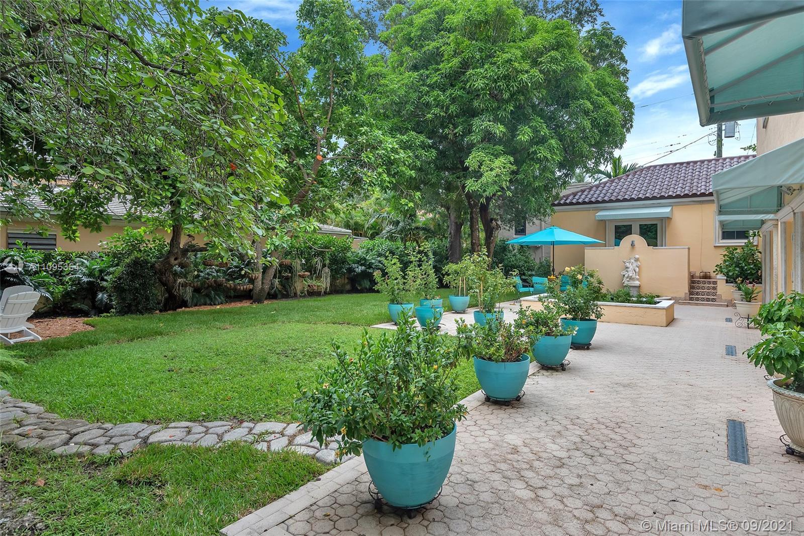 This beautiful Tuscan Home located near The Coral Gables Water Tower. It sits on a corner lot of .25 acres, blocks from Dade’s highest point (no flood insurance ), a new roof completed in 9-1- 21 Warranty 12 yr.. Its quality construction is evident in the outstanding appointments of high ceilings & high arches giving it an air of grandeur, embraces an old-world look with all the modern amenities, emphasizing windows & exterior doors (all impact) that flood the interior spaces with natural light, while maintaining a privacy,oversized private tropical garden with many fruit trees (mangoes, avocados, bananas, etc.),flowers, lovely garden of various herbs. With space for a pool, four blocks from the Coral Gables Country Clubs. the gorgeous Venetian Pool available to all Coral Gables residents.