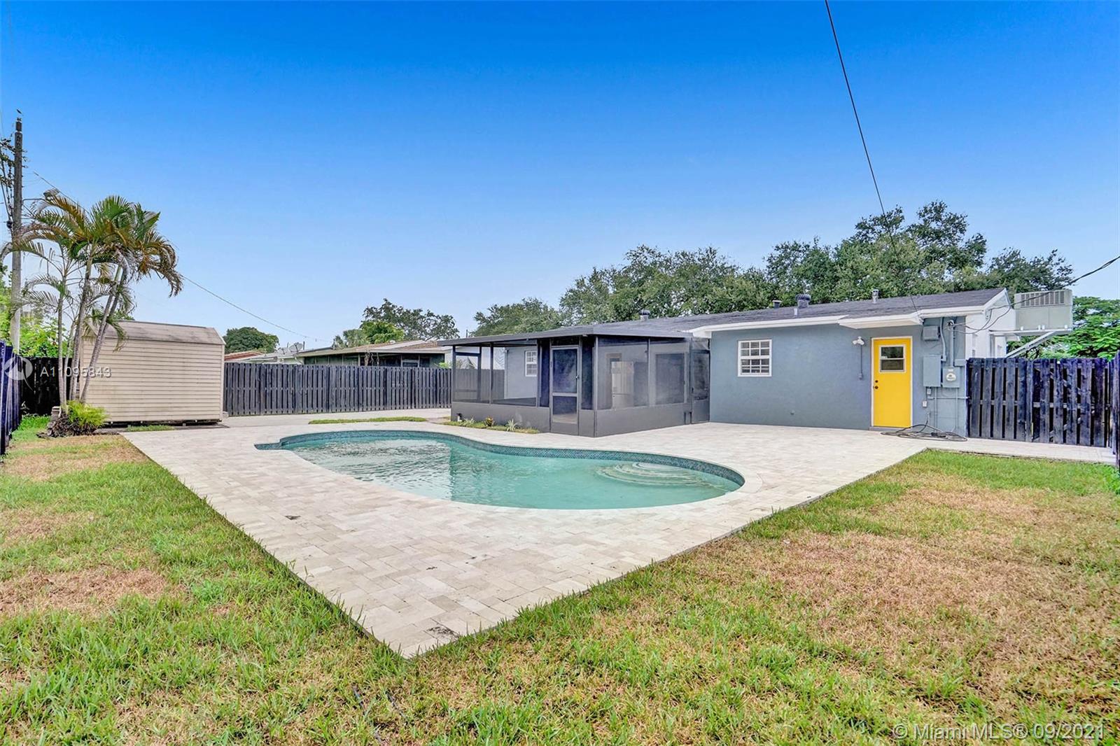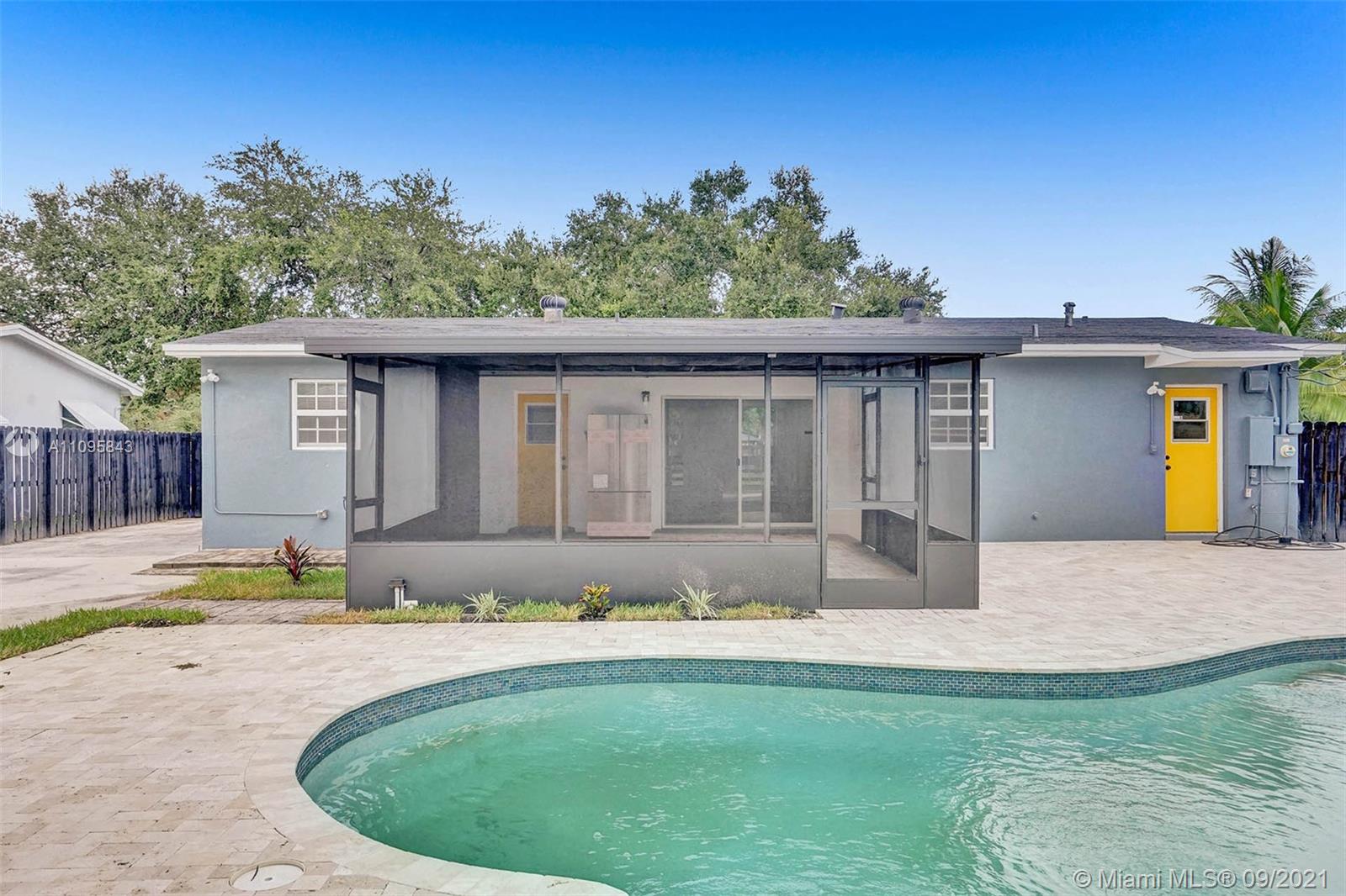 Beautifully renovated 3bedroom 2 bathroom home with a secluded backyard oasis. Your own swimming pool and screened in porch make this the ideal home for outdoor entertaining. Enough room on the side of the house to store your RV or boat, or just park your car inside the gates. Close to the Turnpike and 95 centrally located near shopping centers, medical centers and houses of worship. Come by today and make this beauty yours. Please note, refrigerator in screened in porch does not convey with house.