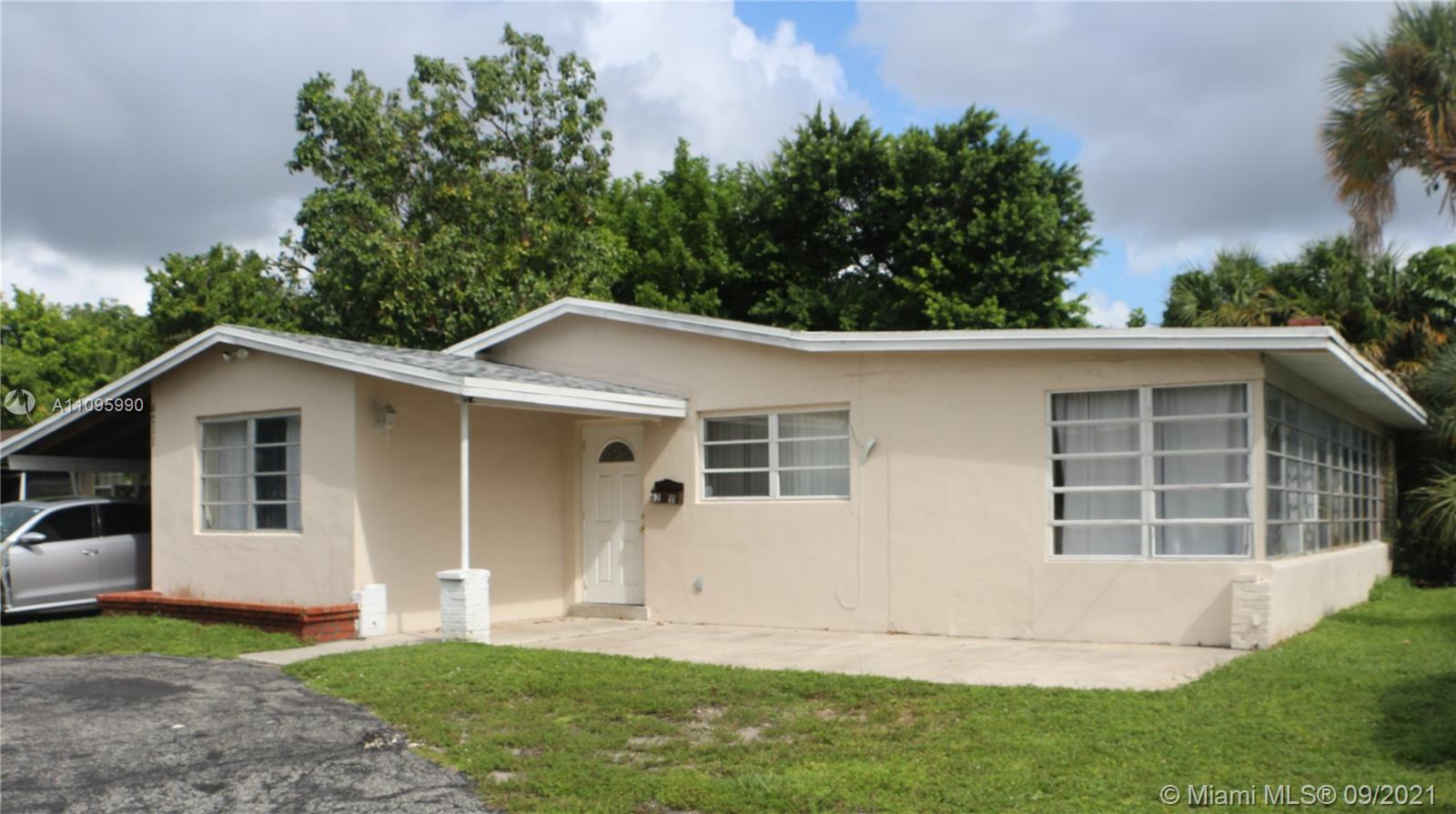 Priced to SELL !!!!!Cozy and ready for a new owner Single Family Home in Sunrise. Spacious Home features 2 bedroom 2 bath with 1 extra room being used as the third bedroom, storage room, laundry room, large Florida/family room, eat-in kitchen with breakfast bar plenty of parking with circular driveway and carport, private fenced backyard, close to schools, shops and highways. This spacious house has a newer shingle roof 3 years old, flat roof has been re-sealed, newer electric and central a/c system. House expected to sell quick. See it now. Showing Instructions contact EDWIN REYES.