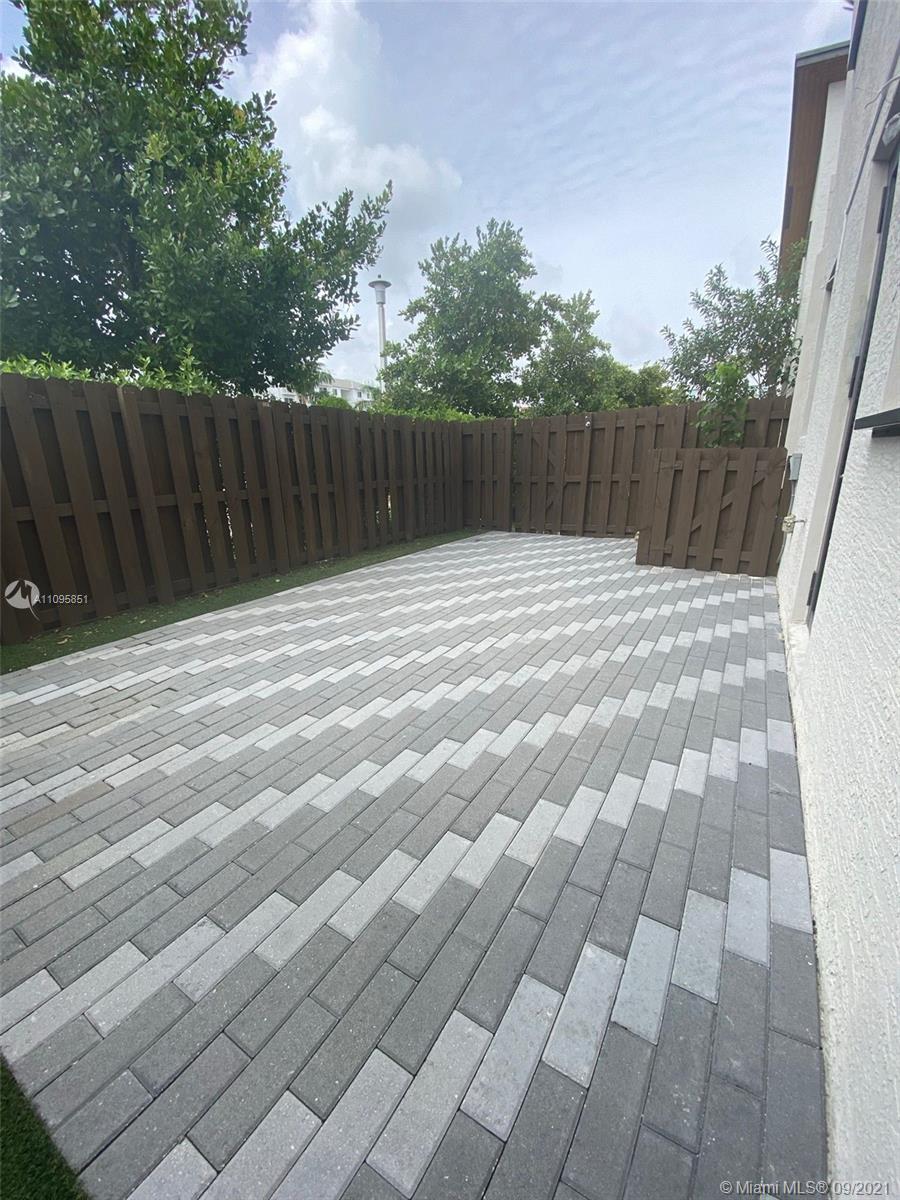Corner unit.Contemporary style with upgraded interiors, modern design kitchen with quartz counter-tops, European cabinets and stainless-steel appliances. Family room leads to a fenced backyard with no direct neighbors behind. Second floor features 3 bedrooms, spacious walking closets, upgraded bathrooms and convenient washer and dryer on second floor. Tile on first floor and wood laminate on second floor. Private gated community. Resort style clubhouse for residents and family, tennis court, basketball court, children's aquatic park and playground, fitness center, sauna & steam room. Not subject to appraisal. Located in the newer part of Doral, near A-rated schools, parks, shops, entertainment & more!