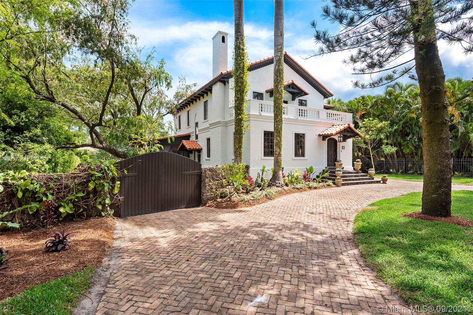 Meticulously updated Historic Masterpiece from 1928, situated on 15,000 sqft of land with +/- 100 lft on the inlet of the Coral Gables Waterway, no bridges to bay. The 2-story home is an excellent example of Mediterranean Revival architecture. Roof with clay barrel tiles, detailed with roof outrigger beams and finished in rough stucco. Our Grand Dame has a well appointed and light filled living room with fireplace, dining room, kitchen, sunroom/enclosed porch/café, half bath and porte-cochere on the 1st Floor. 2nd Floor offers 4BR/2BA, and a south facing balcony from the Master Suite. Preserved and refinished oak floors and original clay tiles. A secluded 1BR/1BA cottage is overlooking the waterway, patio and the beautiful pool. A truly magical home! Showings starts Saturday, Sept 18.