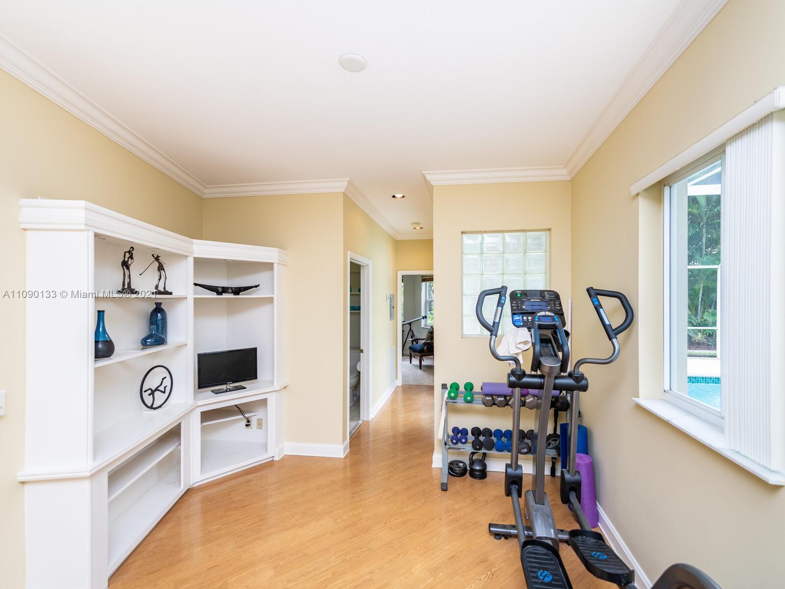 Spacious & bright, triple-split 5 BD/4 BA waterfront home in a gated community of only 105 unique custom-built homes. In-Law Suite with kitchenette, separate entrance & direct access to the pool, can be configured as 1 BR/1 BA or 2 BR/2 BA. Master BR with walk-in closet & French doors to the screened patio that includes a heated, salt-water system pool enhanced with bubblers & spillway feature. Master BA with two vanities & separate jetted-tub/shower. Front entrance leads to the living room and formal dining room. Large center area of the home has two sets of French doors to patio/pool & includes an open kitchen, sitting area, family room with real wood-burning fireplace and renovated wet bar. Waterfront backyard with an additional patio area. Large circular driveway & three-car garage.