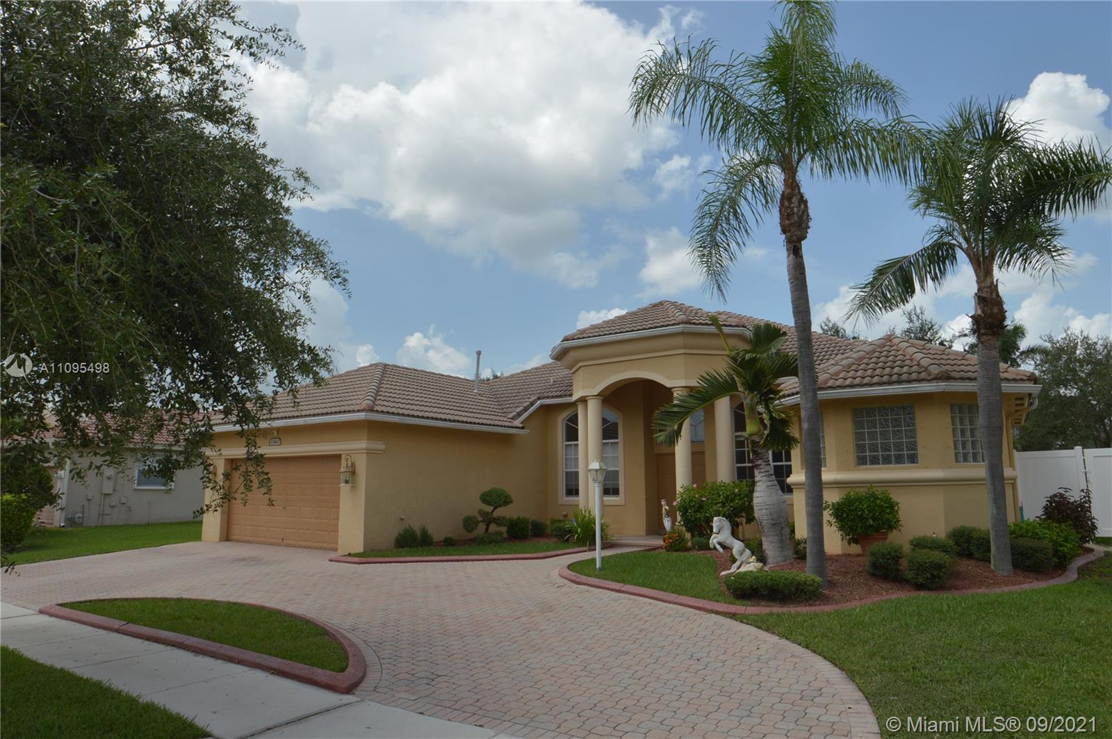 This is a modified Monterey model where the owner has added a 2nd full master bedroom! Enter through double doors and feel the warmth throughout this home. The interior features 5 bedrooms (2 master suites) with 4 full bathrooms plus an office with 2 car garage. All closets have been built out. Master bathroom boost a roman tub, separate shower, water closet with dual sinks. Two of the children's bedrooms is separated by a Jack and Jill closet! All 3 bathrooms located on west side of the home have been fully renovated. Appliances and 3 central a/c units newer. Whole house generator which you will find to be a blessing! Tile throughout the main living area with top quality wood laminate flooring in all the bedrooms. Community filled with amenities.