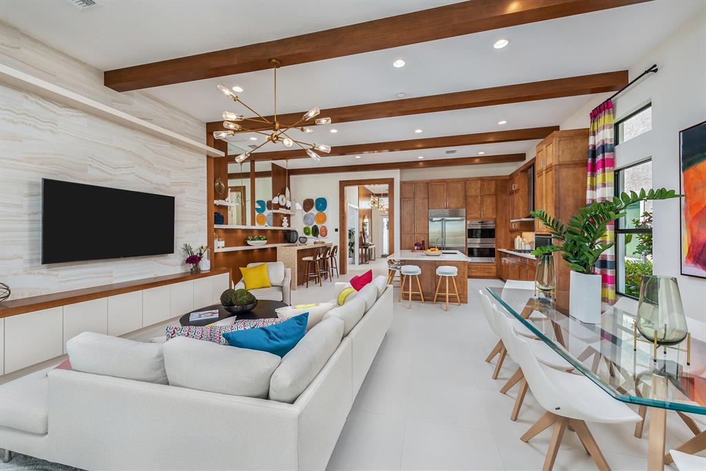 Two story home with one story living Great Room Floor plan with a master bedroom on main floor. Very Open! 12' ceilings throughout main level. Open concept with dry bar and large Island. Custom Millwork throughout this home. Large Sliders that lead out to a summer kitchen with outdoor fridge all in stainless steel and overlooking pool and lake. Custom Ceiling and wall details throughout. Upstairs Bonus Room with balcony and private bedroom with full bath great for guests!