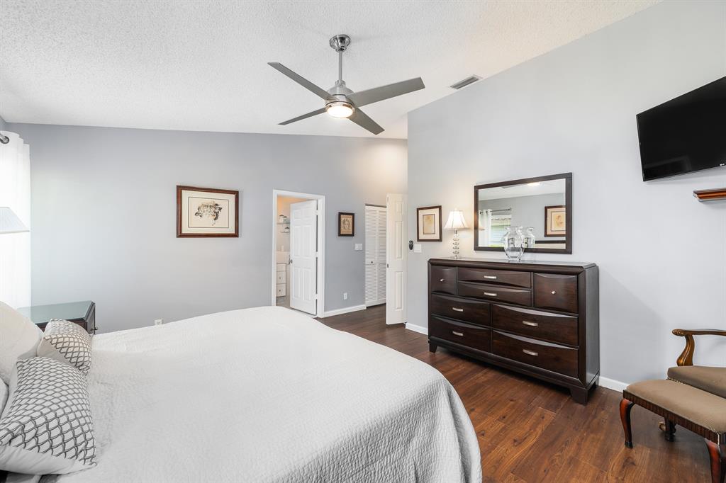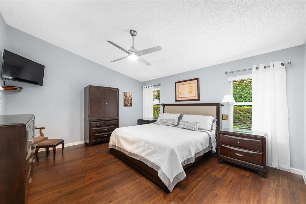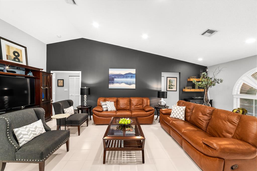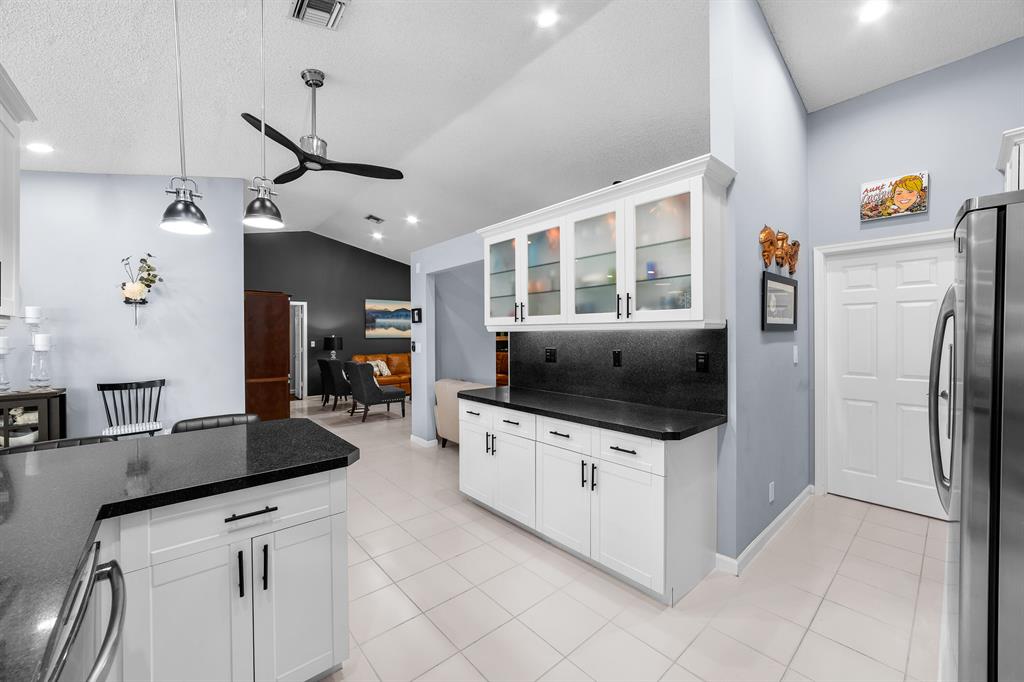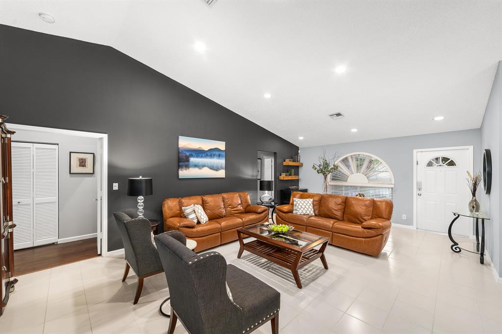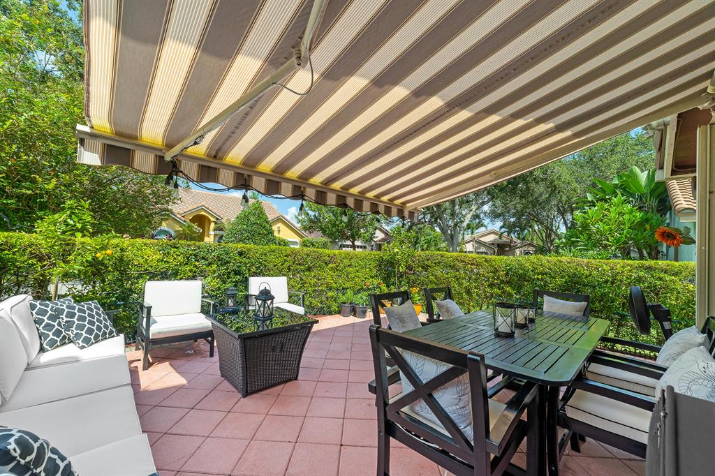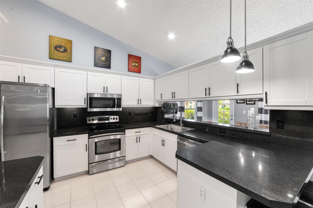 One of the largest 3 bedroom models at 1,899 square feet, in the sought after neighborhood of Brookside Isle in Coral Springs! This oversized corner lot has amazing curb appeal and continues as you walk through the front door and welcomed by an open style floorplan with vaulted ceilings. The updated kitchen features modern cabinets, GE stainless steel appliances and granite countertops. There is tile throughout the main living space and laminate flooring in the bedrooms. The primary suite has a large walk-in closet, oversized walk-in shower and a wood vanity. The patio boasts privacy while the sitting area wraps around the backyard and has an electric awning for a relaxing environment in a beautifully manicured setting. The many additional features include accordion shutters, water heater