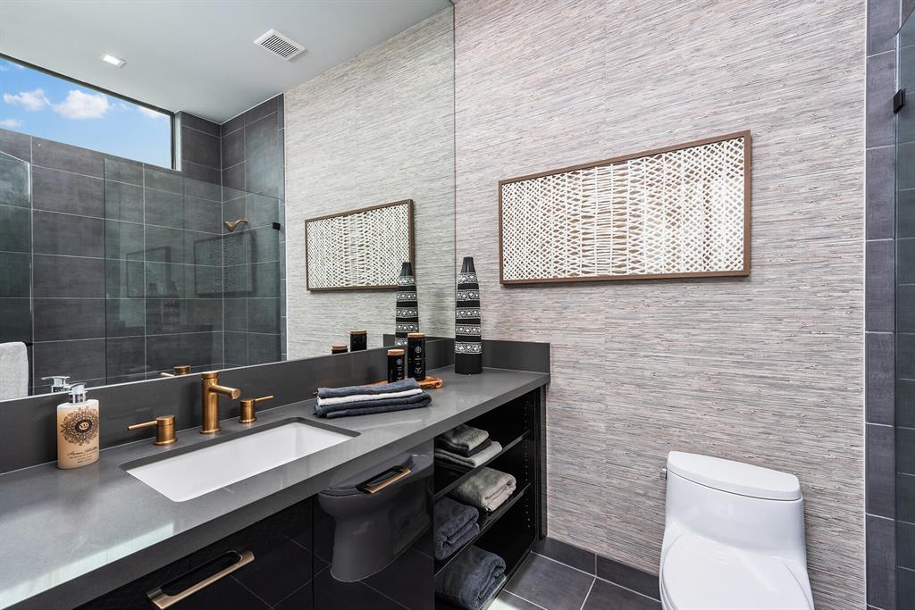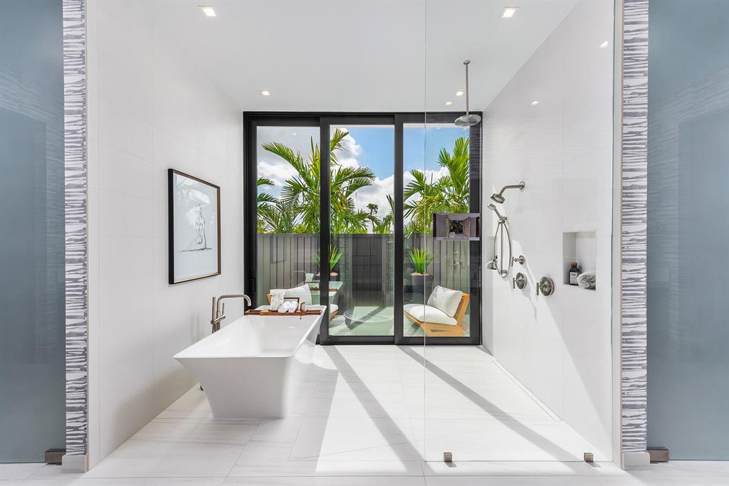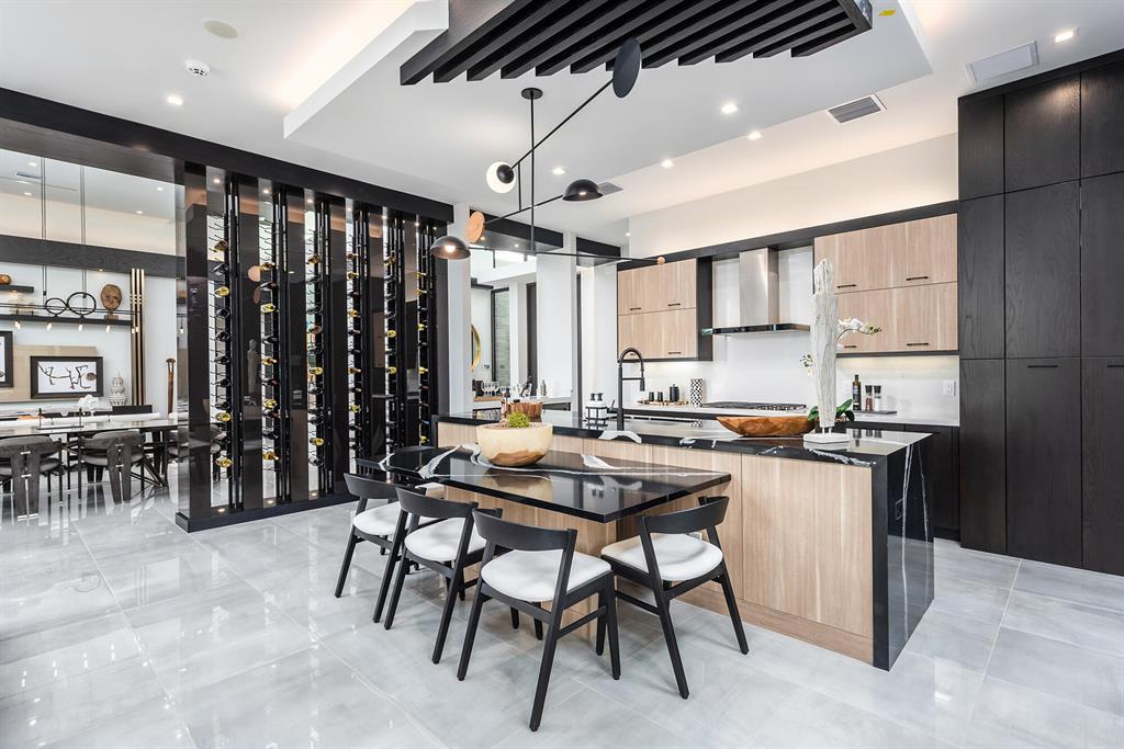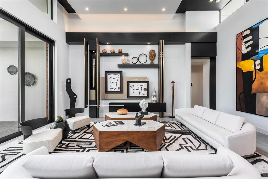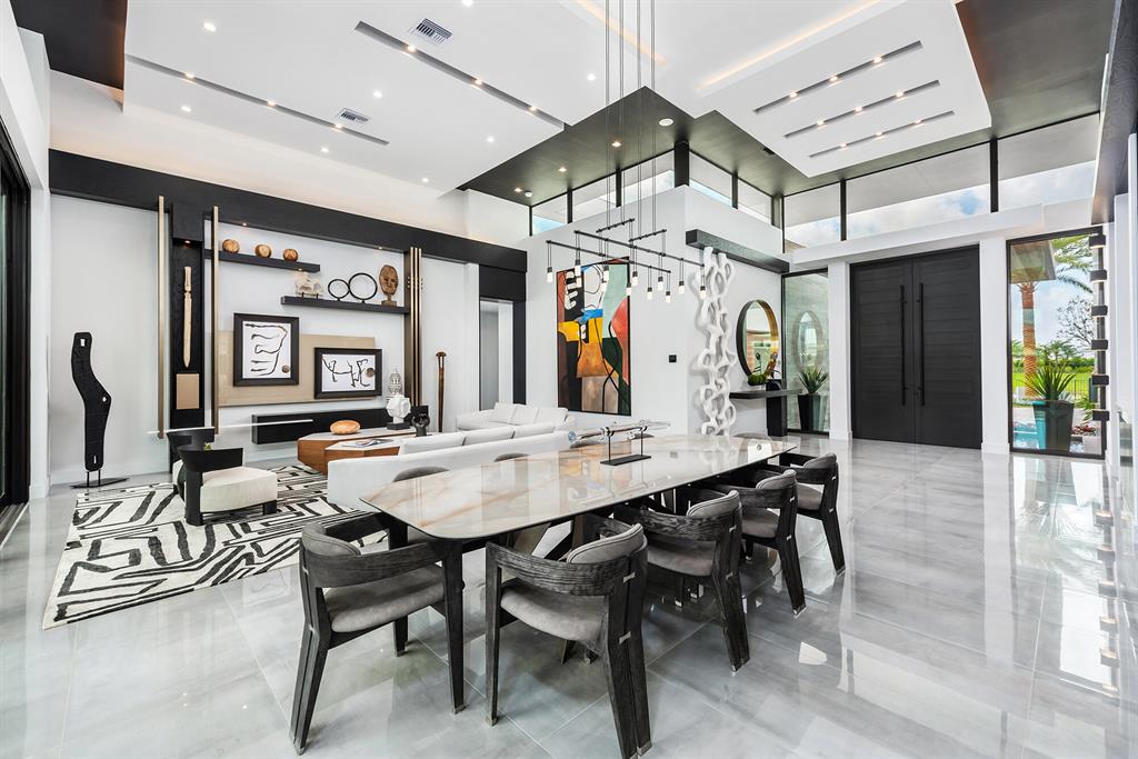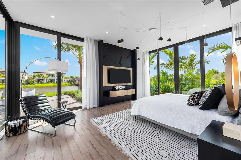 Modern one-story, open concept home with floor to ceiling windows/sliders throughout overlooking the stunning custom pool and beautiful lake. This home features a fabulous entertaining backyard with upgraded summer kitchen and custom pool with floating steps, water feature and bubblers. Some of the many highlights include: unique entry with water feature and 12' doors, 16' ceilings in living and dining areas, natural stone driveway/walkway, Ipe garage doors and extensive Ipe accents on exterior walls, modern gourmet kitchen with integrated appliances, spectacular modern master bath with floating vanities and walk-in integrated tub and shower overlooking the lanai.