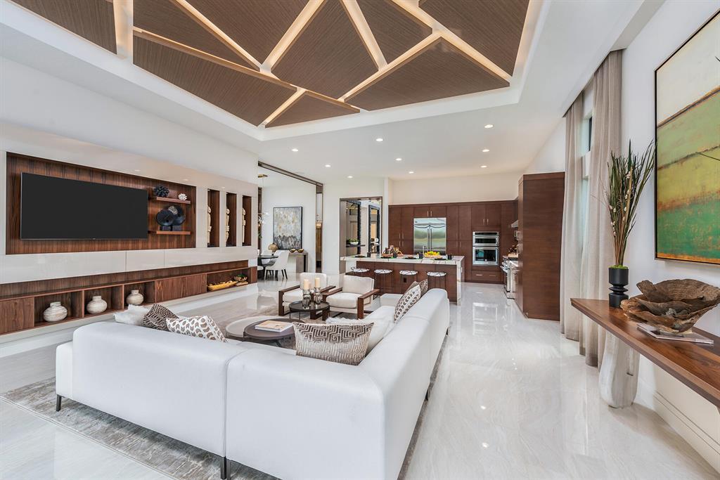 This model sits on an oversized cul-de-sac lot featuring the most breathtaking fountain lake views on the model row. This is a one story home featuring 3 bedrooms all en suite with walk-in closets and a den. There is an upgraded cabana bath with access to the covered patio. This is a great room floorplan with a formal dining room and open gourmet kitchen with 12 to 15 ft ceilings throughout. There is a beautiful upgraded summer kitchen in the covered patio overlooking a gorgeous lagoon style swimming pool with raised waterfall spa and planter with waterfall feature.