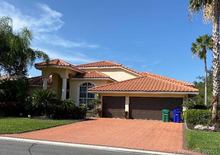 Gorgeous unique home in Kensington Coral Springs with 4 bedrooms, 2 bathrooms and 3 car garage with a 6 car driveway. Property is beautifully landscaped on a corner lot. Close to schools, shopping, and the Sawgrass Expressway. Formal living room, large and open family room, dining room and kitchen area with vaulted ceilings. Great for entertaining. Roman tub with separate shower in the master. Laminate, hard floors throughout the home with open and spacious natural light coming in. Private backyard with a salt water pool area. Washer/Dryer, All Stainless Steel Appliances, hurricane panels throughout the home with garage hurricane impact doors. Roof only 6 years old. Remodeled kitchen with quartz countertops and soft closing cabinets. You will love this community & all it has to offer!