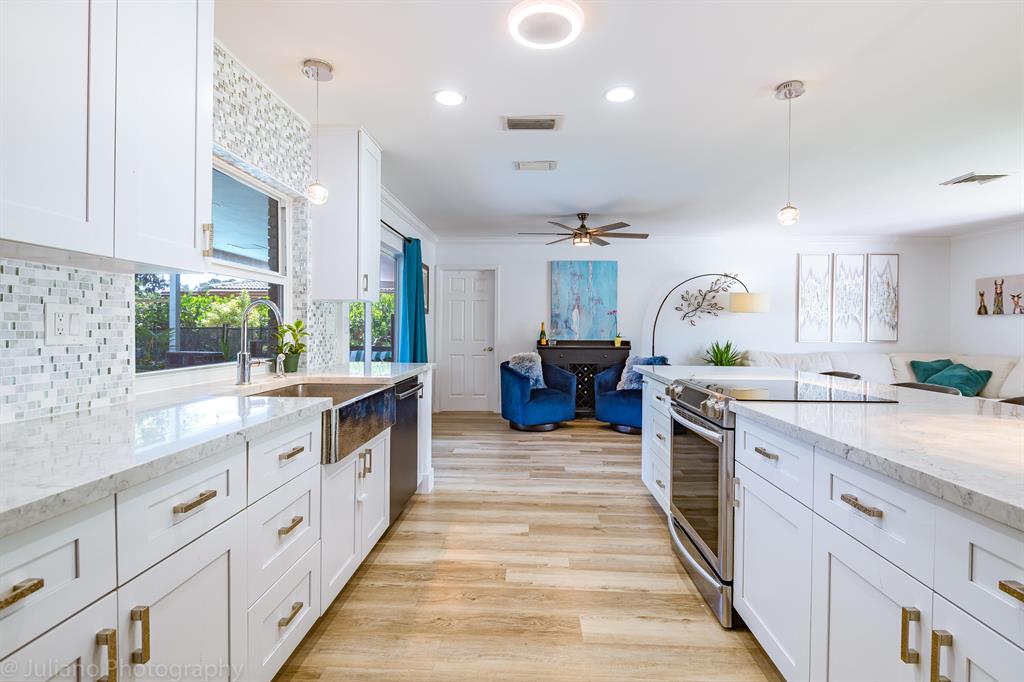 FEATURES OUTDOOR: NO HOA near Mizner in A Rated School district w/over 1/4 of an acre lot, plenty of parking and a private cul-de-sac. Safety features throughout property w/ yard leveled above the canal and gate surrounding w/ Privacy fences on both sides. UNIQUE INDOOR: Complete high end remodel w/ Split Floor Plan to Large Bedrooms and open floor concept w/ bathroom exit to the pool area. Hurricane windows and dual outdoor sliders that create a large backdoor opening for entertaining.