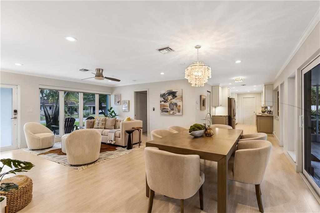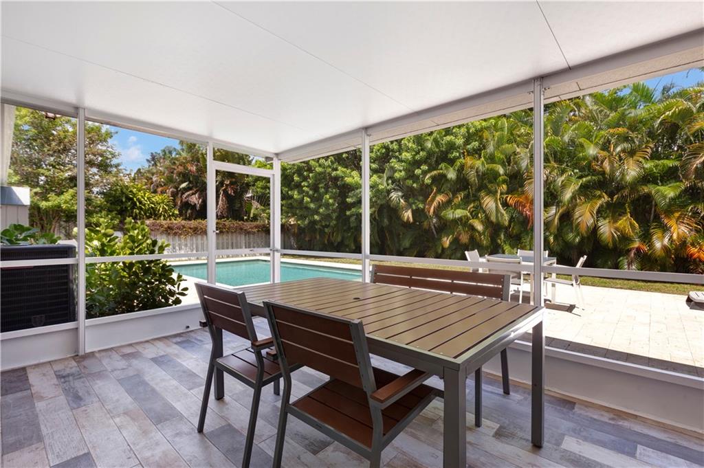 The location & turn key design of this updated contemporary home in E. Fort Lauderdale's subdivision of Coral Ridge, make it ideal for those eager to take advantage of the S. Florida lifestyle. Mins. to the beach, shopping, restaurants, fitness centers & Bayview Elementary. Outstanding curb appeal with lush tropical landscaping frames the home's entry. Entertain family & friends in the open floor plan that boast a wall of sliding doors blending indoor & outdoor living spaces. A spacious screened in Lanai overlooks the chlorinated salt water pool with sun shelf, hot tub, patio area & garden. The kitchen with tremendous counter space will surely please the avid chef. The primary suite offers 2 walk-in closets & a lavish bathrm The 2nd & 3rd bedrm share a full bathrm. Sq Ft From Seller
