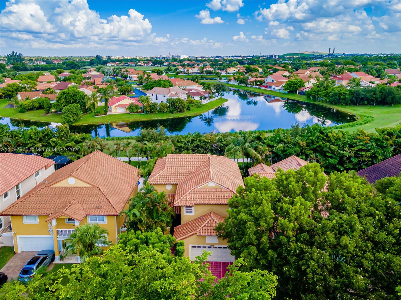 Outstanding 4/3 single family 2,967 sq ft home directly on Silver Fox Golf Course in prestigious Doral Dunes. Beautiful unobstructed golf/lake views. Very spacious formal living, dining, added family room and kitchen w/ tall bay windows, informal dining, island, wood cabinets, granite counters + SS appliances. Brazilian cherry wood and marble in first floor. Chicago bricks and canopy in relaxing patio. Wood/wrought iron stairs up to bedrooms. Huge master with terrace, marble bathroom (shower, jacuzzi, bidet). New roof under warranty till 2028. Brand new A/C. Gated community with 24hr guard. Access to Doral Park Country Club w/excellent amenities: pool, gym, tennis, basketball, volleyball, kid's playground, sauna, 2 restaurants, bar and more. Must see it! Call listing agent.