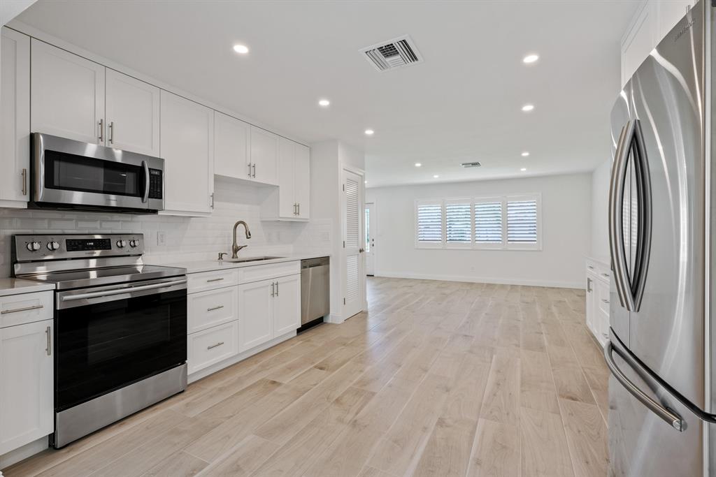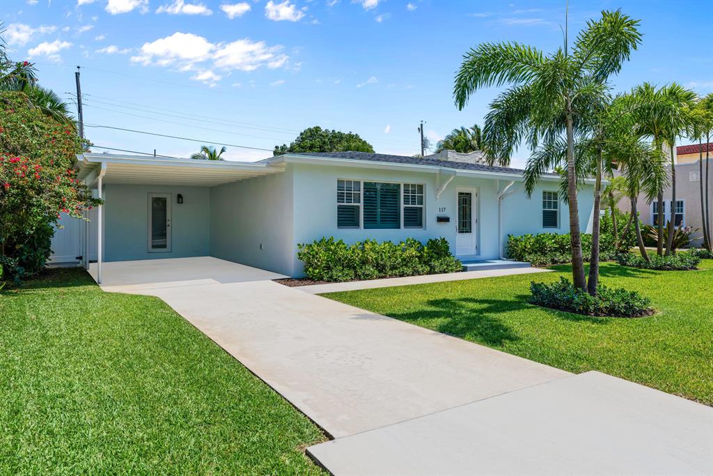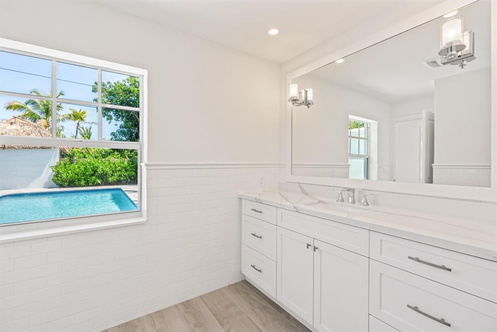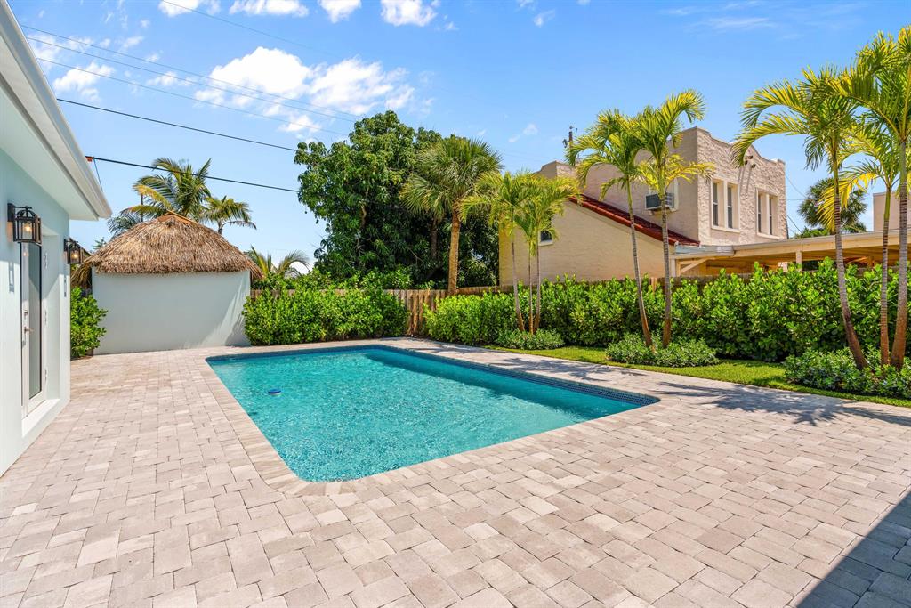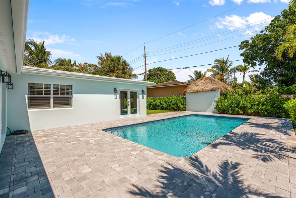 Meticulously renovated home to today's trends to perfection. Open and spacious floor plan in sought after desirable SOSO location. Only a few homes away from path walkway to S. Flagler Drive and nestled on a quiet and peaceful cul-de-sac in a wonderful neighborhood. Just a few minute walk to the inter-coastal. This home also features new 2018 impact windows, roof, 3 new full baths, new kitchen, new French doors to rear patio, resurfaced gunite pool with new tile accents and trim surrounded by a new paver patio, beautiful hand selected plants for the landscaping with outdoor lighting, fenced in yard and a sprinkler system fed by a well in the front and rear. Laundry Room remodeled with new washer and dryer, great school system. A must see home!