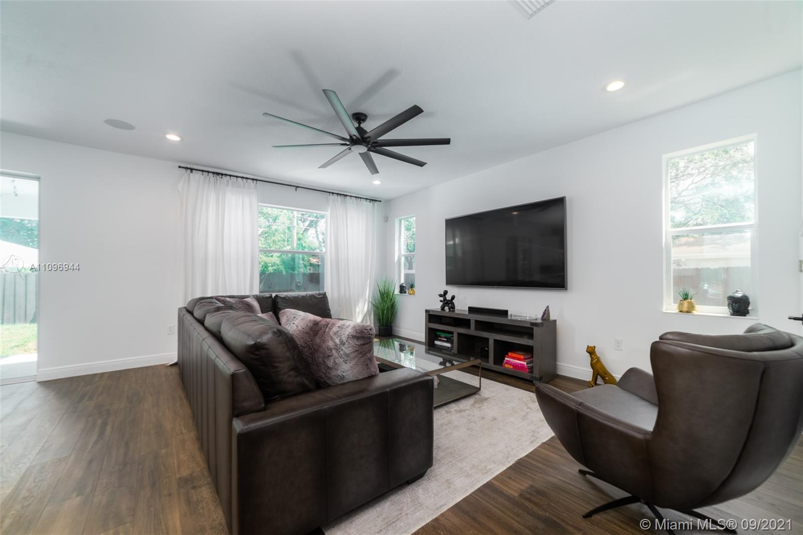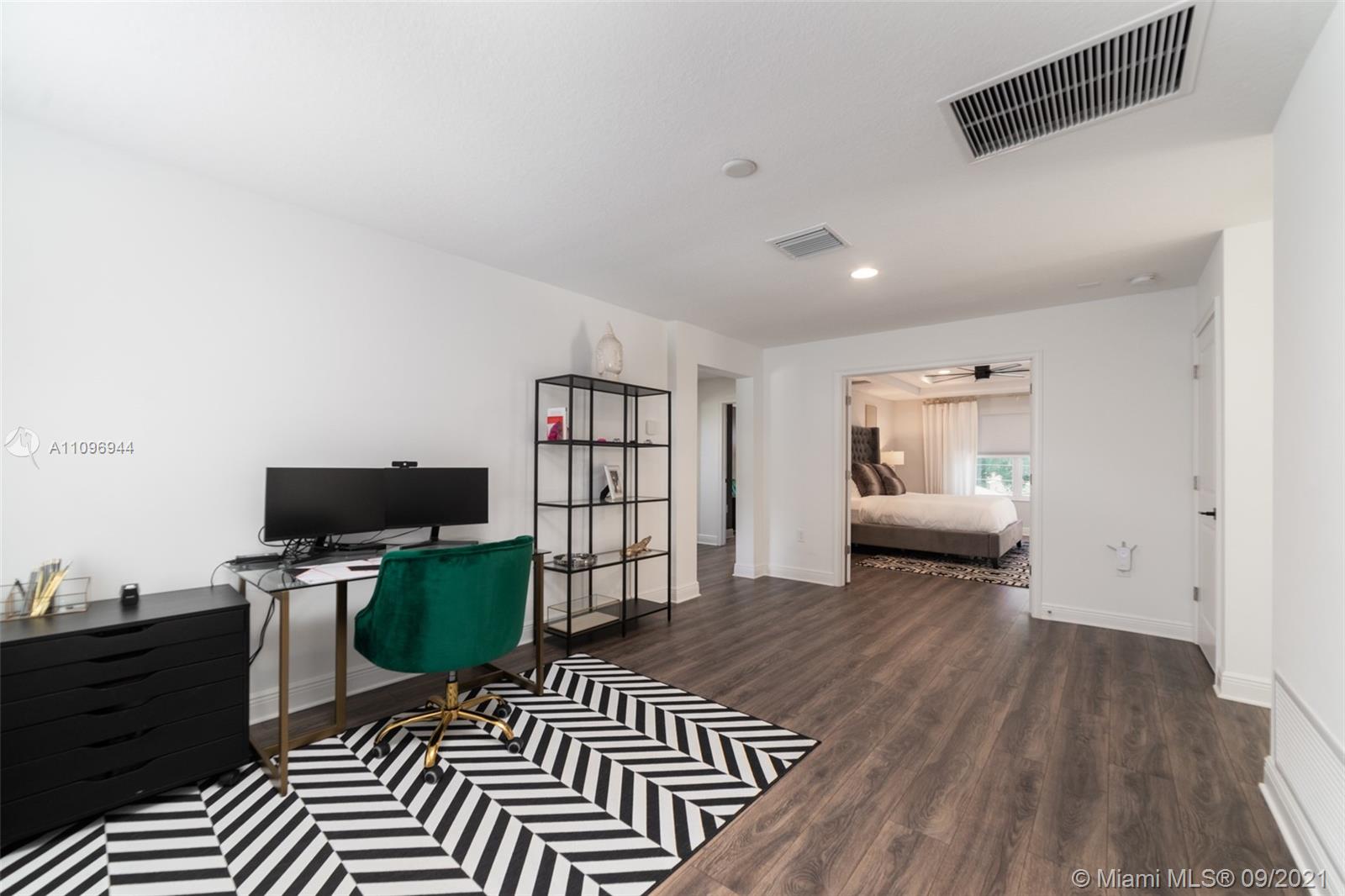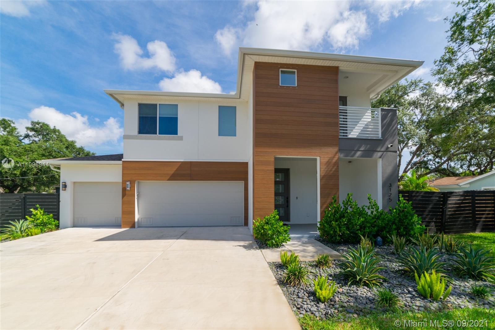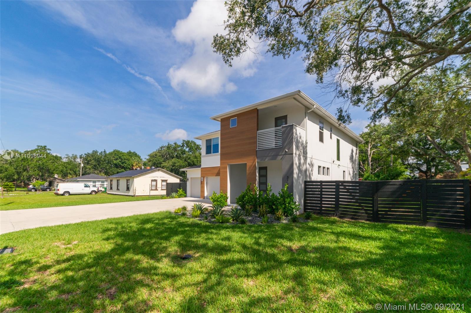Contemporary custom finished home. 4 Bedrooms and 2.5 baths PLUS a BONUS ROOM. Open concept with wood floors throughout. Custom Gucci wallpaper in powder room. Main room French doors and vaulted ceilings. Backlit bathroom mirrors. Large custom walk in closet. Large fenced backyard with covered Lanai and enough space to build a pool. 3 Car garage plus driveway.