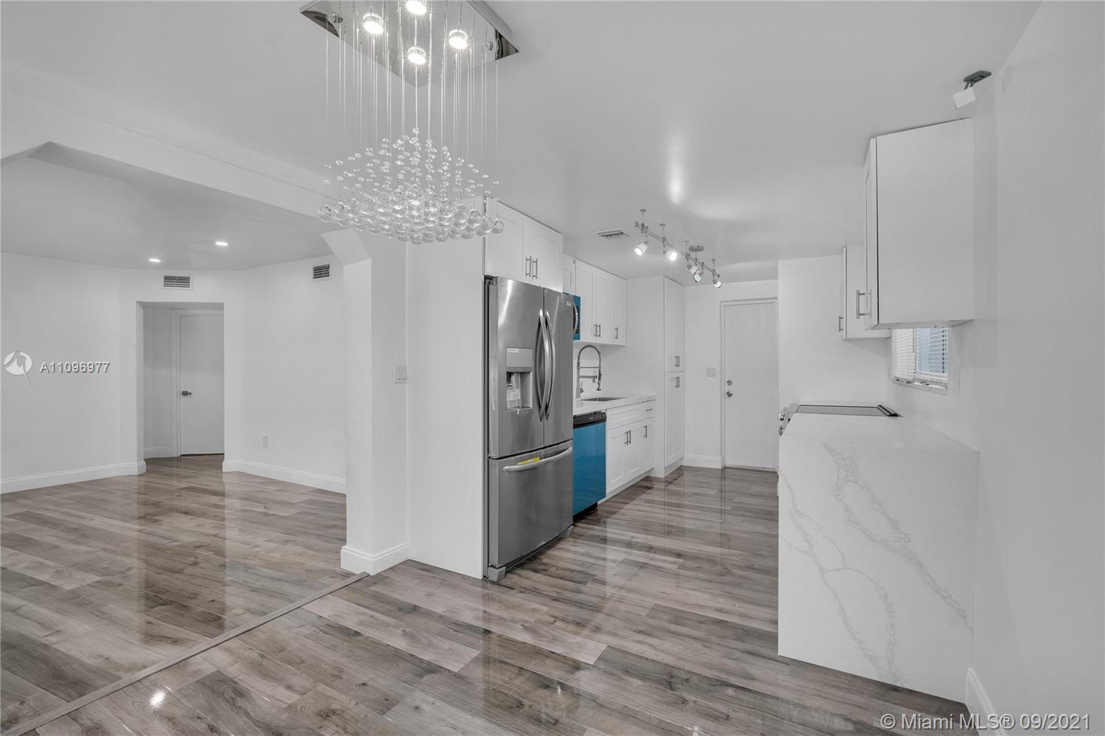 CHARM, LOCATION AND CONVENIENCE! You’ve found the perfect Hollywood starter home, move-in ready and priced right. This beauty is ready to welcome your family and friends with it’s top to bottom fully remodeled interior… just bring your green thumb to landscape the backyard into an oasis. Stunning European style kitchen with solid wood soft-close cabinets, 2020 Frigidaire SS appliances, Calcutta quartz counters, upgraded sink faucet w/LED lights. Laminate floors and upgraded light fixtures throughout the home, complimented by recessed lighting in the living area. Remodeled bathroom w/ heated jacuzzi tub, upgraded lighting and energy-efficient toilet. In addition, screened patio with ceiling fans, Whirlpool stackable W/D, 2018 Water heater, STORM READY with impact windows and doors!