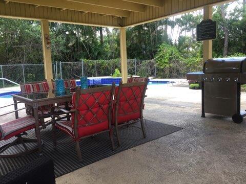 Gorgeous 3Bdr, 21/2 bath home with tons of upgrades. Remodeled kitchen with quartz countertops, stainless steel appliances with direct access to the pool deck. Hardwood and porcelain floors throughout. Updated bathrooms include new vanities and tilework. Home has impact windows and doors. Amazing pool with large deck area, beautiful wood beams. 1.25 acre corner lot great for entertaining in Royal Palm Beach. Reverse osmosis water filtration system throughout the house, all appliances are propane gas, new septic-2016, pool pump and filter.