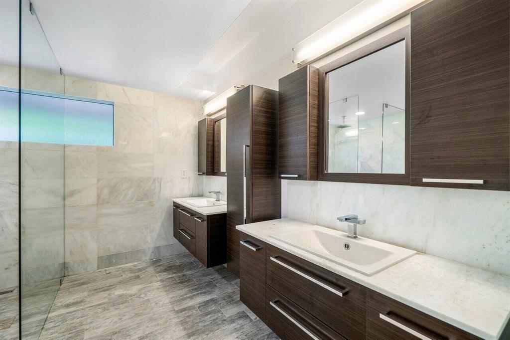 Rare central Boca remodeled 3/2 pool home on a corner lot with extra yard space and oak trees, in an A-rated school zone. Full kitchen remodel (natural quartz tops and backsplash, undermount stainless sink, stainless appliances, shaker cabinets, cove light above cabinets); 24'' rectified porcelain tile, mud set, credit card thin grout lines throughout all living spaces; skim-coated ceilings/walls; recessed lighting; extremely spacious bedrooms; spa-like master bath with marble rainfall shower, open glass enclosure, linear drain, wall mounted vanities with marble counter/marble backsplash; second bath complete with marble tile in shower/tub, modern hardware, wood look dark porcelain floor; A/C ductwork redone early 2014, A/C replaced 2013; built-out kids closets; woodwork in child's
