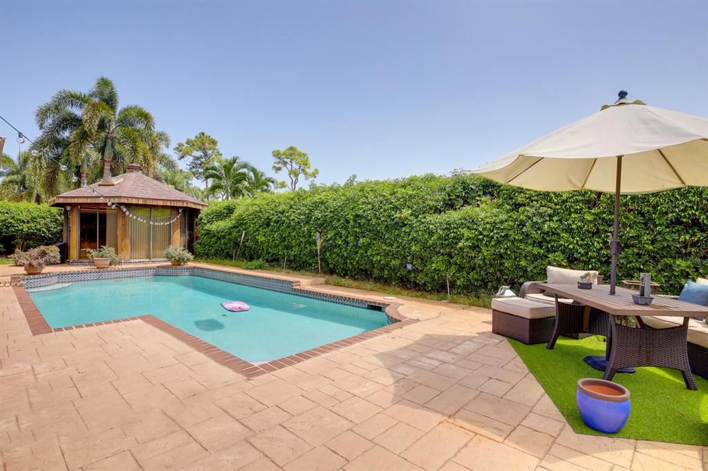 Beautiful home great location with an open floor plan and vaulted ceilings. 3 bedrooms n 2 baths and a 500sqft Gazebo with electricity and ac perfect for and office, gym or ideal as a 4th room or entertainment room. Home has a an oversize pool with breathtaking landscape. Home is fenced in the back yard. Timbercreek is a family oriented community with beautiful lakes to walk and quiet neightborhood. Centrally located close to town center mall in Boca and much more. This home is 10 miles from the beach and centrally located between Fort lauderdale International Airport and Palm Beach International Airport. Excellent schools: Calusa, Omni, and Spanish River. New Roof, replaced on year 2021. Electrical circuit panel replaced on 2019. Accordian hurricane shutters and AC unit replaced.