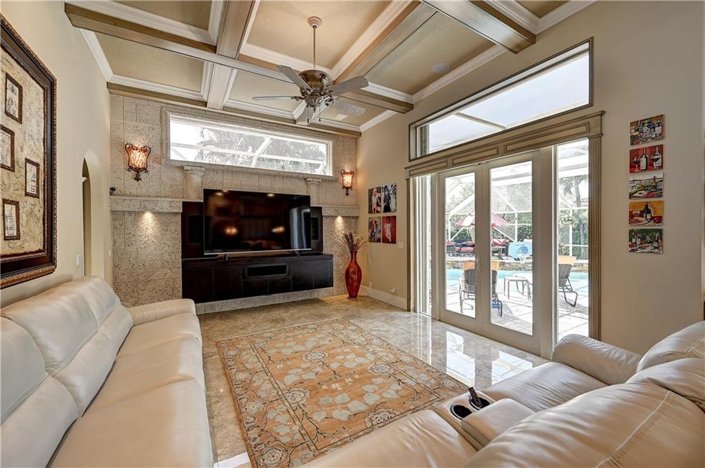 Welcome home to this incredible 5/3 (5th bedroom is custom office) home in highly sought after Chelsea at Kensington Glen. No detail has been spared in this home, it features: Custom Kitchen w/ Hand Painted Murals, & Built in Wine Rack, Granite countertops, & top of the line SS appliances, built in banquette table w/ matching Granite top, custom built Built in Bar, Real Exotic Hardwood Flooring, Coffered Ceilings, Custom Crown Moulding, Built in Stereo, and Surround Sound, Plantation Shutters throughout home. Kitchen overlooks beautiful Screened in Salt Water Heated Pool w/ Waterfall & Summer Kitchen. 3 car garage w/ Epoxy Flooring, has been partially converted into Workshop. Home also includes, Custom Doors, His & Hers Walk-In Closets, Accordion Hurricane Shutters & two built in safes.