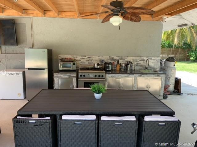 Beautiful corner lot home in the desirable area of Southwest Ranches! This 4/2 pool home sits on almost 1 acre of land and features an open kitchen with granite countertops, stainless steel appliances, kitchen island, open floor plan, great pool, and a huge yard with paved patio. Home has a new well water system and a septic tank. Hurricane impact windows with newer roof installed in 2020 and newer A/C. Huge backyard is super private with great outdoor space that features a covered terrace with a kitchen stove, sink, microwave, refrigerator, and TV great for entertaining family and friends. Stationed in the back is a storage shed that is being used as a studio with a bedroom, bathroom, kitchen, and living room. Completely fenced. NO HOA!!! Boats & RVs welcome!!! Look no further!!!
