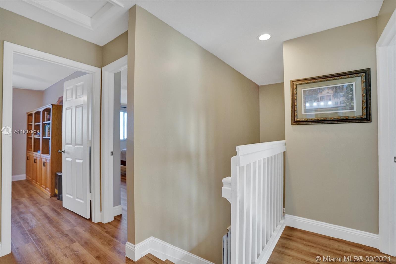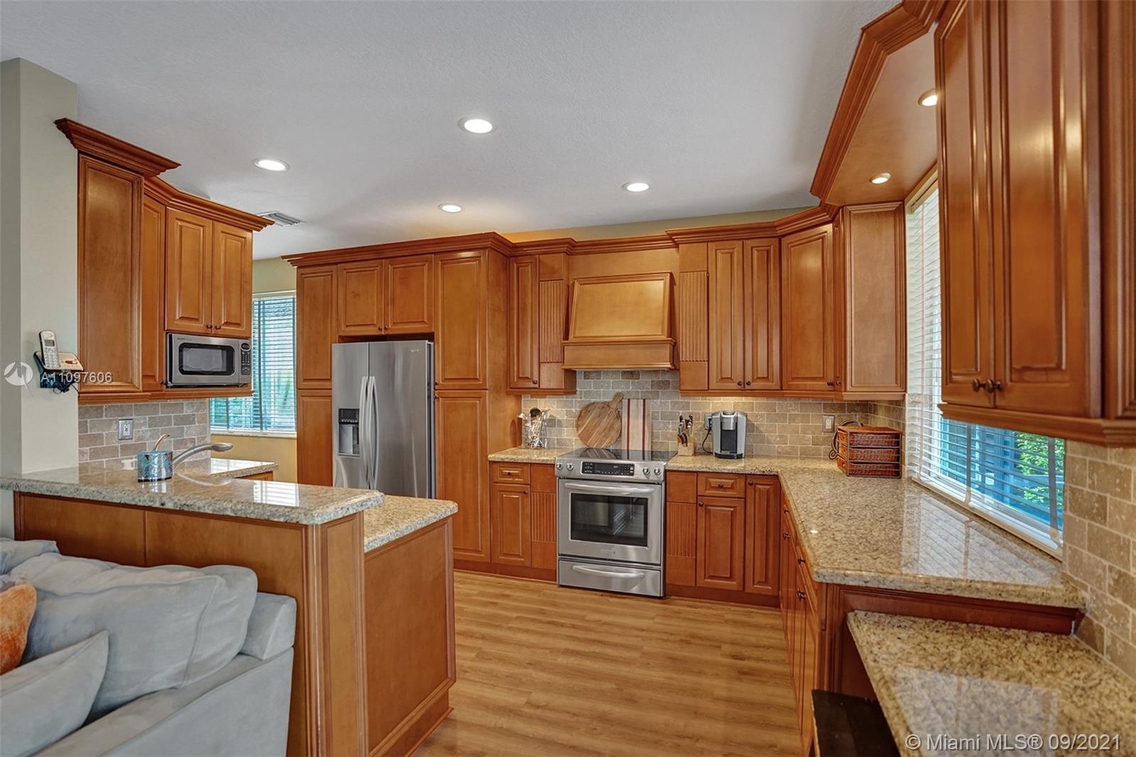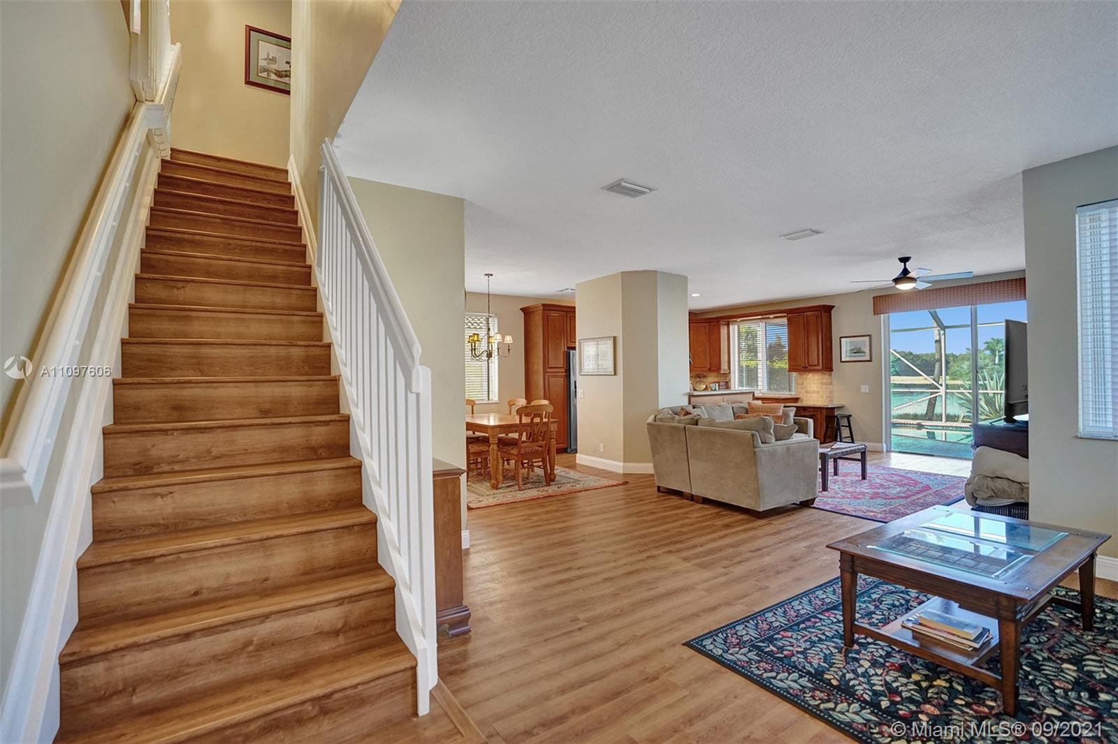 First time on market in The Ridges with 4 bedrooms and 2.5 baths and 2 car garage. Home is immaculate and shows beautifully with all wood flooring throughout home. Gorgeous kitchen with wood cabinets, marble backsplash granite & stainless steel appliances. Nice floor plan with formal dining, living and family room and all bedrooms upstairs. New windows upstairs and accordion hurricane shutters throughout. Enjoy tranquil and stunning long lake views from your screened pool area with a free form pool. Close to the best schools and restaurants. This home won't last!
