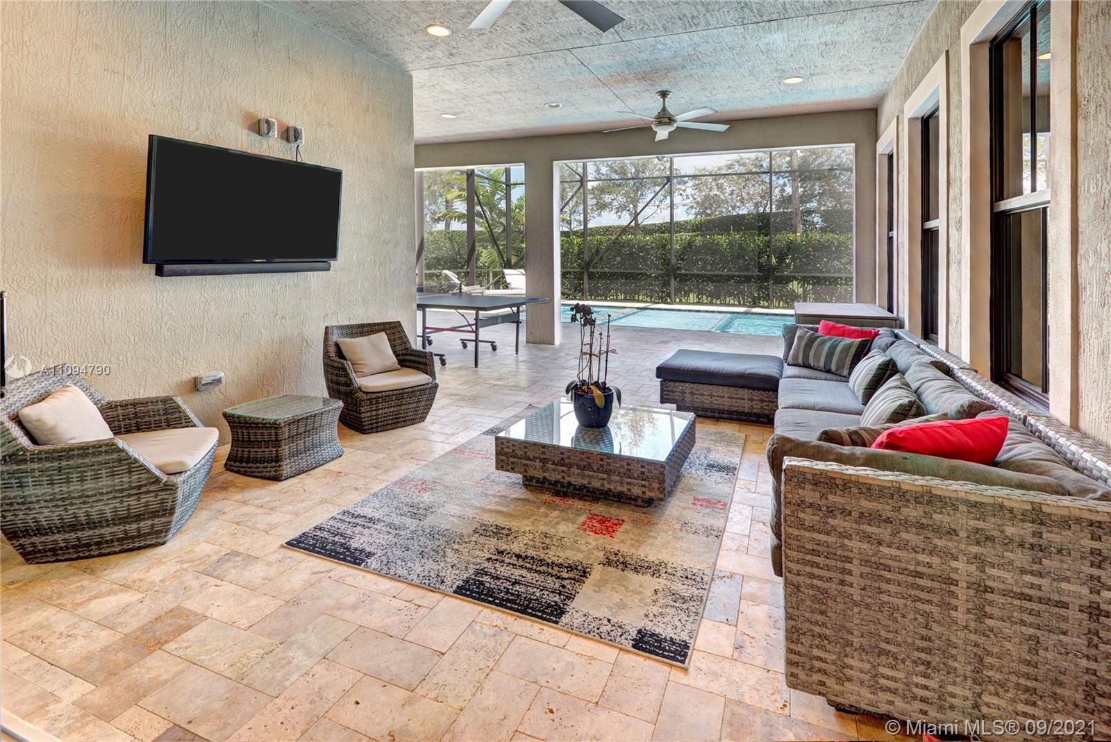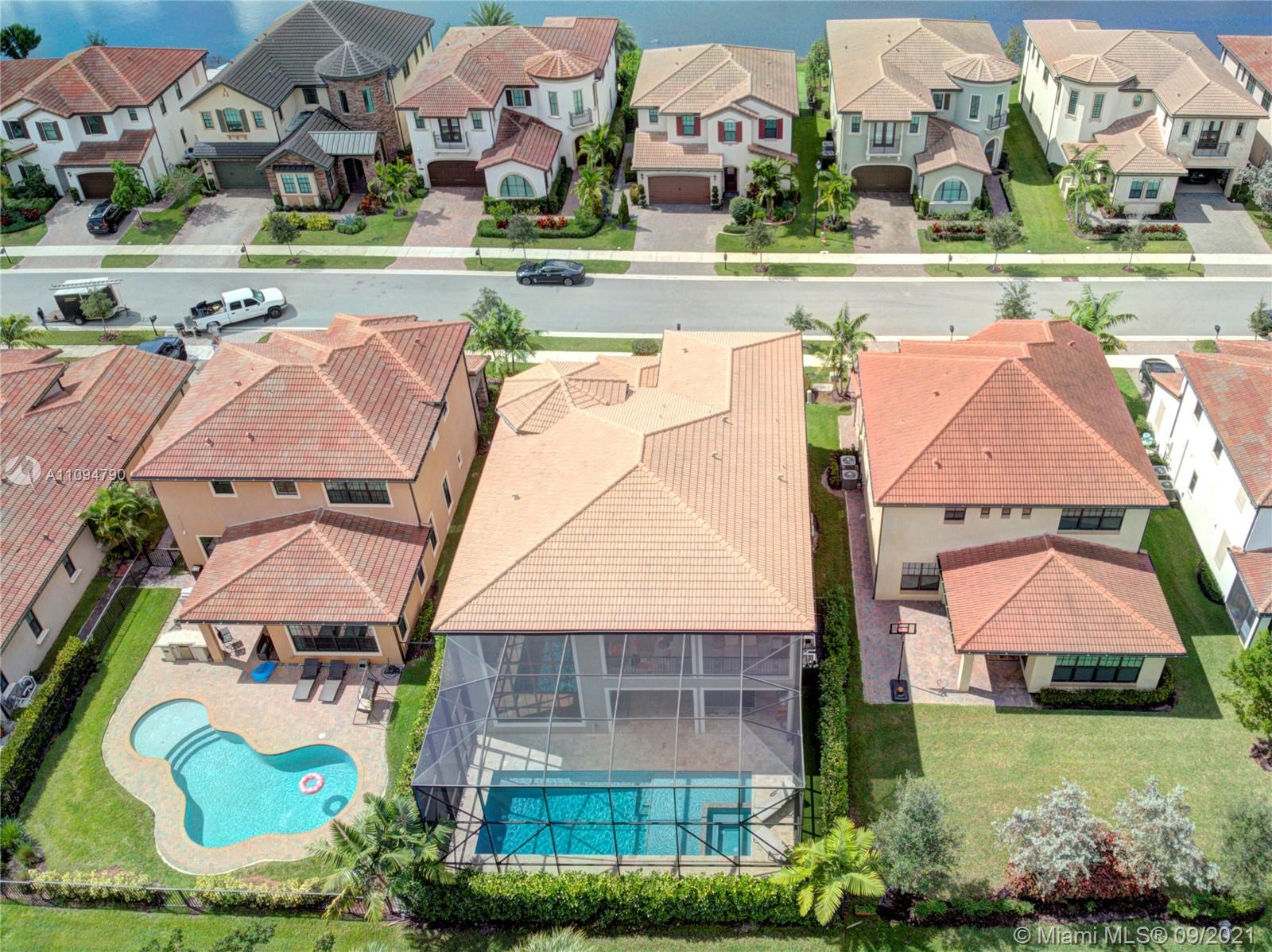 Watercrest Wonder - Stunning Expanded Strathmore with Custom Upgrades and Luxury added throughout. 6 Bedrooms (all en suite) plus 1 Guest Bath. Luxurious gourmet kitchen with gas range, hood exhaust (to outside), stainless steel appliances, stone countertops, tile backsplash, island with eat-in seating and a large walk-in pantry. Triple sliding doors open to a covered outdoor area with lounge chairs, TV, grill and ping-pong table. This leads to a custom heated, salt-water pool (with spa) custom lighting and a 2-Story screened-in enclosure. Beautifully laid out interior with statement foyer leading to grand curved staircase, more than 4,000 SF of LA. Large MBR, 3 Car Garage w/ finished floors and ceiling storage. Hurricane rated windows and doors throughout. Plus Watercrest amenities