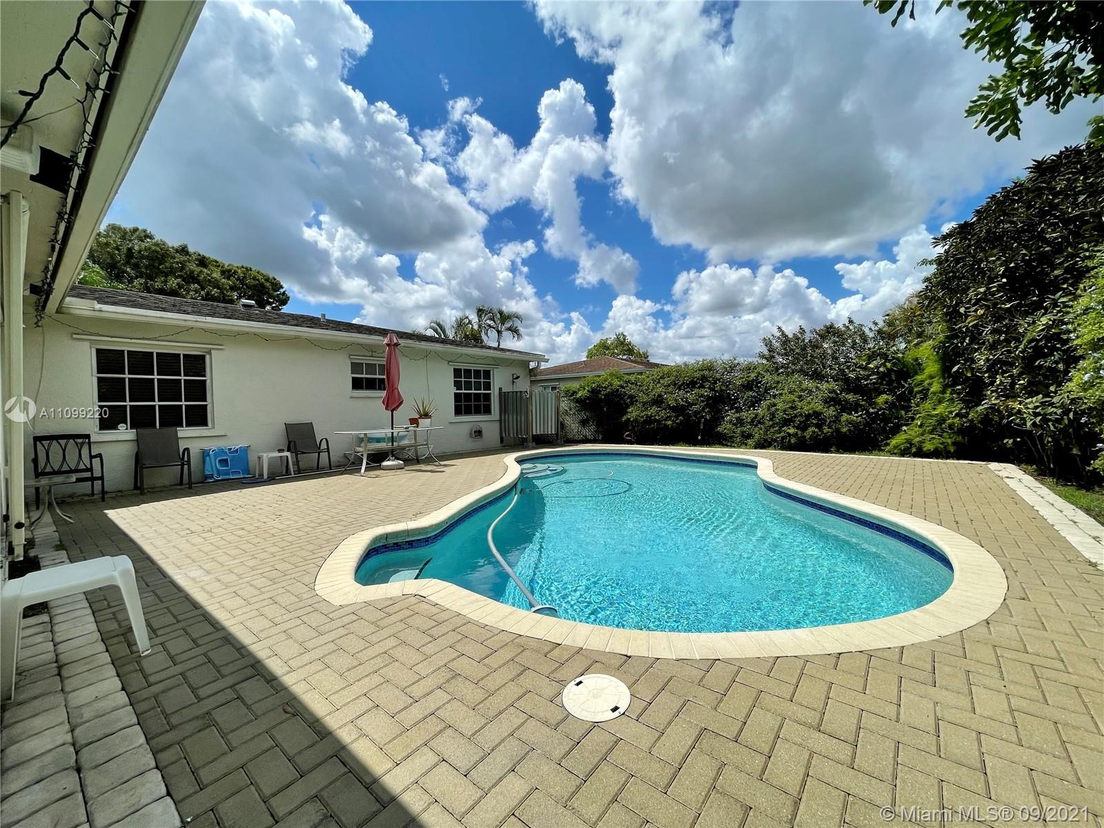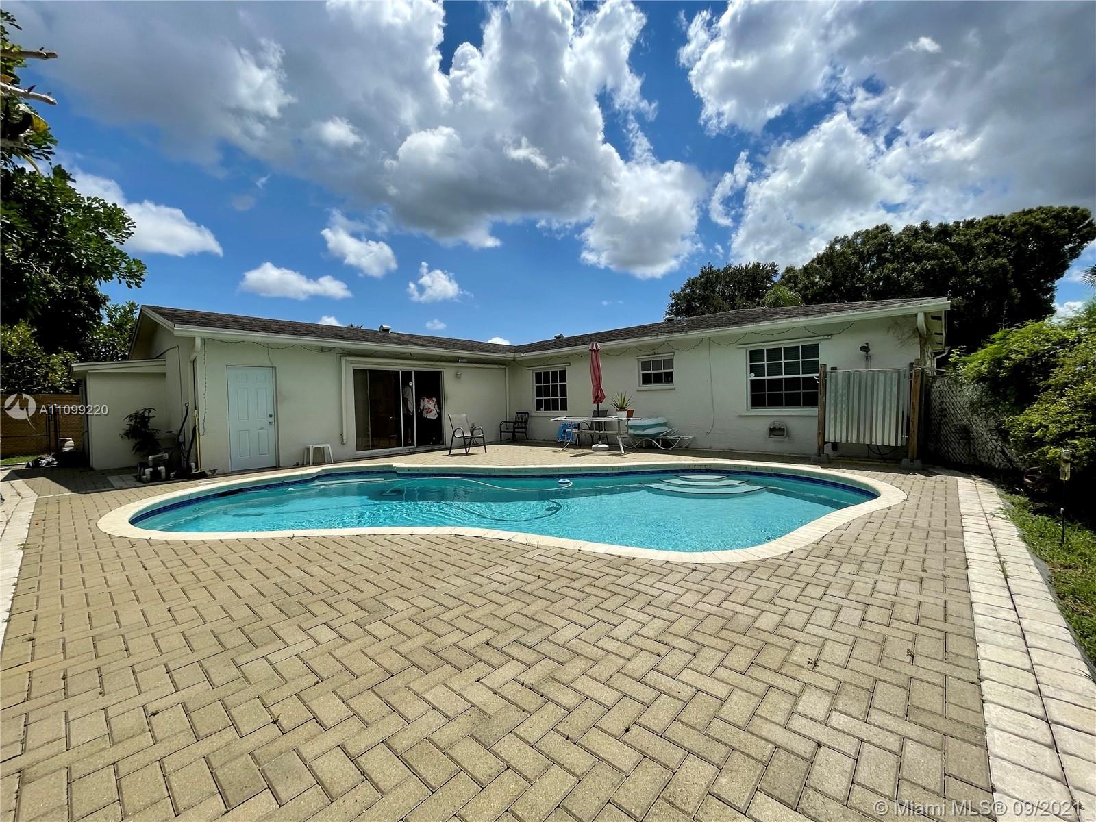 Don't miss out on this amazing single family pool home nestled in the quiet West Boca community of Palmetto Pines!! This home has 3 bedrooms with a fourth that can be used as a bedroom or office, and 2 bathrooms. The pool area is great for entertaining with complete privacy from the lush greenery, sun set awning, and a heated outdoor shower! There is a great fenced in spot on the side of the yard to house a variety of options, a home security system, and water sprinkler system. Home has a new AC and water heater, hurricane panels, hardwood floors, crown moldings, and plenty of storage space. There are two custom built storage areas in the back and storage units built into the garage. Low HOA!!! Just $33 per month!