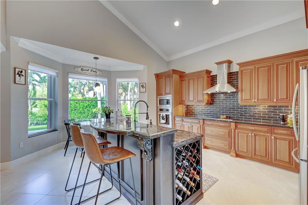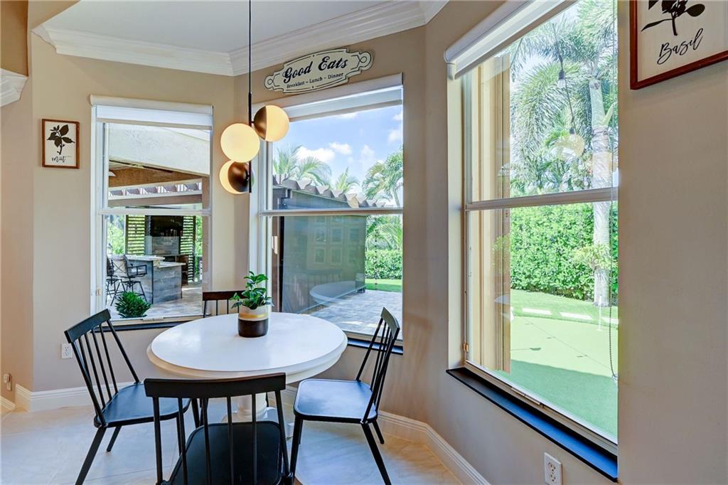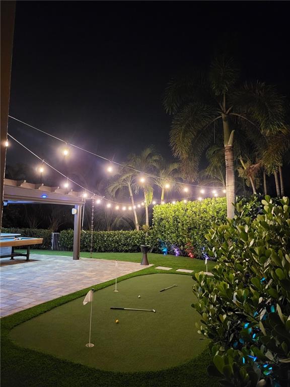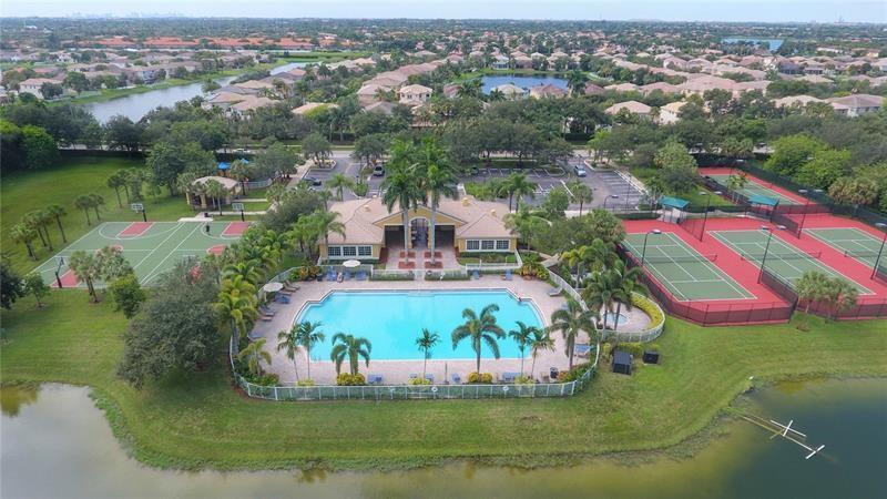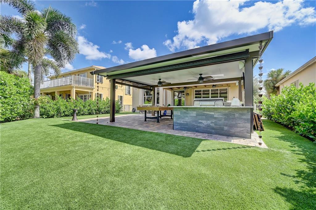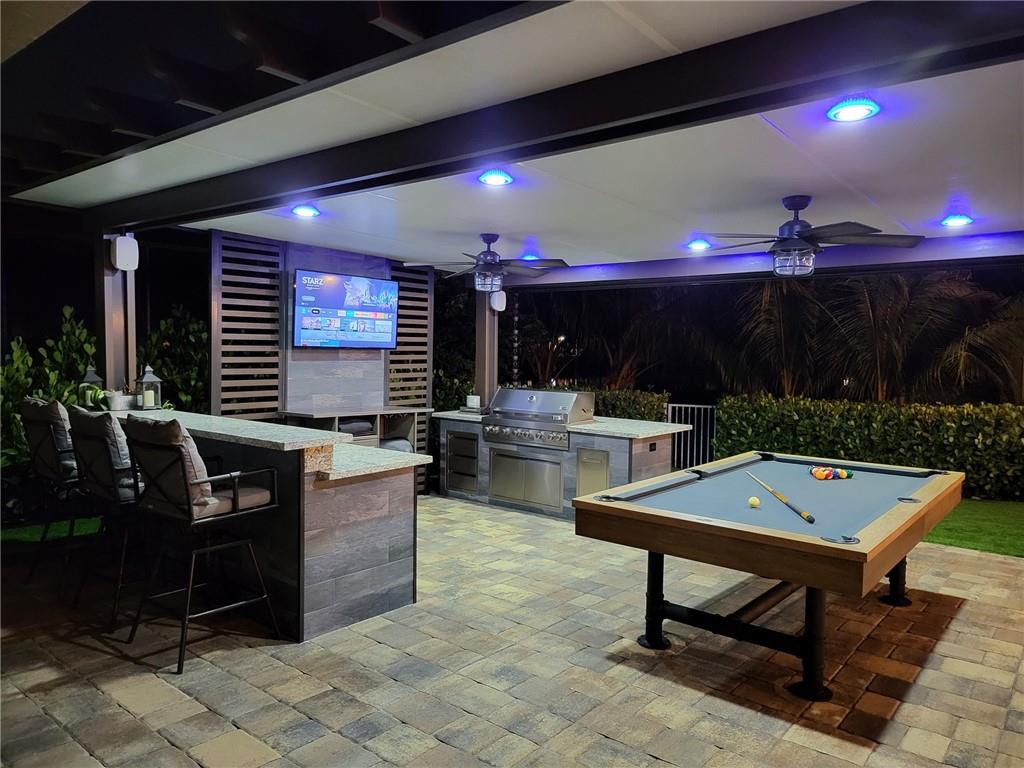 2978 sq ft home in gated community with natural light and custom upgrades throughout that include Cat5 cable and hurricane shutters. Modern floor plan with large living spaces and vaulted ceilings. Kitchen has granite counters, stainless 3-door fridge (Samsung), dishwasher, built in oven, stove and microwave (LG). 2 new central A/C units (Carrier) with Smart Thermostats. New exterior paint. Master bed has his/her bathrooms with shared shower, his/her walk in closets that measure 10'x5' and 7'x5' and French doors onto a balcony. Entertainer's paradise with privacy landscaping, putting green, Pergola with shade screens (can be lowered/raised), recessed lighting, TV, grill, fridge and pool table with table top/ping pong. Low HOA fee @ 145/mo (includes internet, pool, gym, 24hr security)