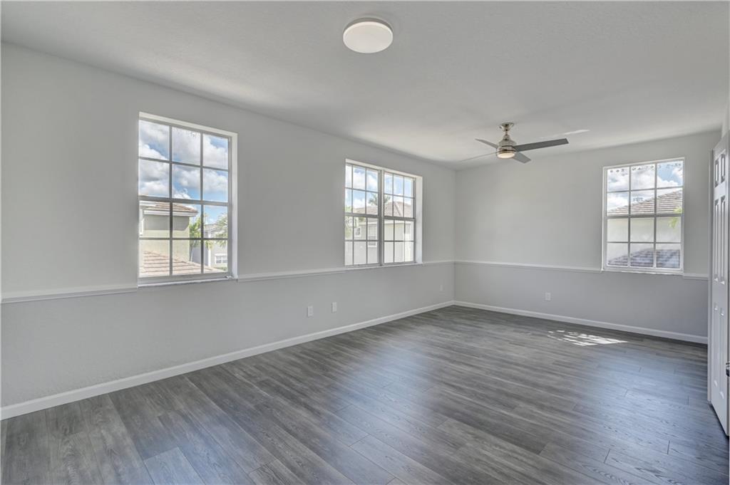 Totally Renovated Pristine/Modern 3/2.5+Loft. This Freshly painted, corner lot home features: Hurricane shutters, 2018 A/C system, Eat-in kitchen w/Refinished cabinets, SS appliances & farm sink, Large picture window in breakfast area w/20’ ceilings & Built-in buffet, 7 new modern fans w/lights & remotes, ALL bathrooms completely remodeled w/new vanity, granite, fixtures & lighted/heated mirror, 1st floor completely tiled & grout cleaned, New laminate on stairs & 2nd floor, Spacious master suite boasts walk-in closet and Extra loft area can be used for recreation room or office. 2 car garage has epoxy sealed floors, Built in overhead storage & cabinets, 2019 Tankless water heater w/filter & Brand new Broten garage door opener. HOA incl. Roof repairs/replacement & painting. Community pool