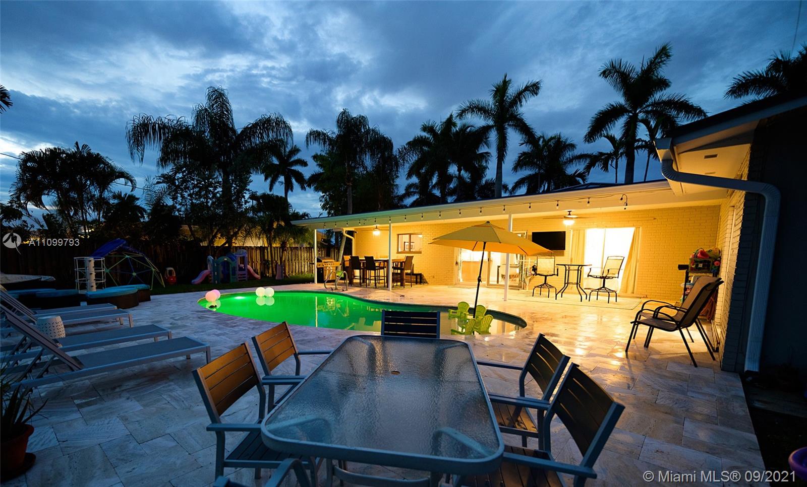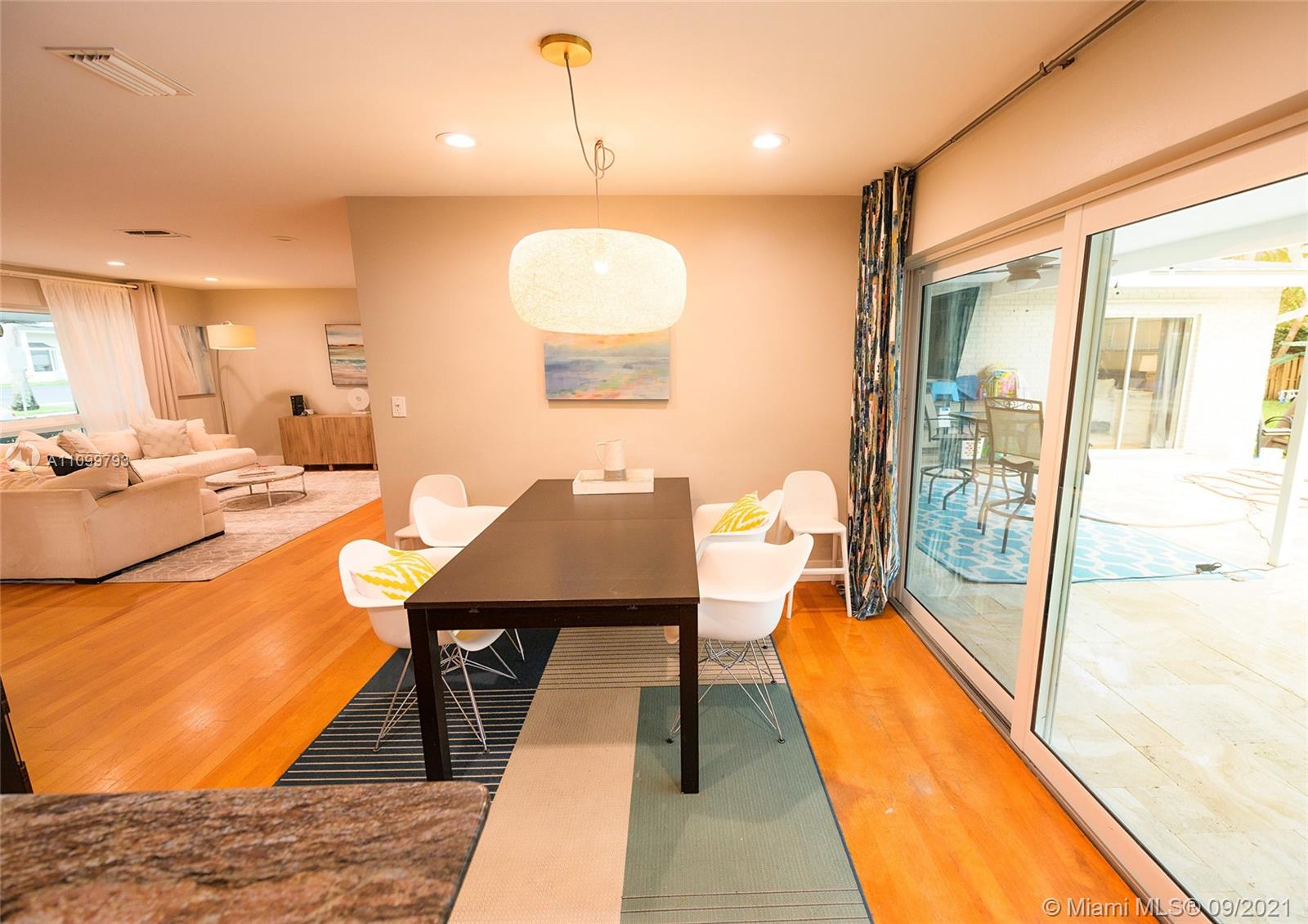Beautiful 4 bedroom 2 bath remodeled pool home in one of the most desirable areas in Hollywood Hills. This is not a house, this is a home. Large open kitchen with custom wood cabinets, granite countertops, stainless steel appliances. Wood floors throughout. Brand 2021 new metal 50-year roof, new 2021 25-year solar panels, partial hurricane windows and doors, new 2021 electric, gorgeous remodel resort-style pool surrounded by Travertine. You will feel as if you are vacationing in your own home. Large lushly landscaped double lot with RV or boat parking. Large multi-purpose storage shed. Steps away prestigious Chaminade-Madonna prep school. Centrally located. Close to restaurants, place of worship, parks and major hwys. This is the home you have been waiting for.