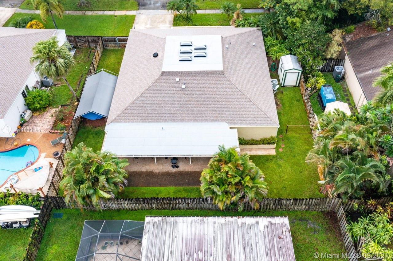 Lovely 4 Bedroom 2.5 Bathroom 2388 sf Mediterranean home with Mexican Tile throughout & Camaru 3/4 inch Brazilian teak Floors in Bedrooms, French country kitchen tile countertop, light wood cabinets. Extra Large Pantry, appliances all whirlpool and approx 6-7 yrs old. Beautiful skylights & wood working on ceilings. Larger sf than tax roll original atrium enclosed for additional Living space. Family Room with dry bar, Pool Table (Pool table negotiable). Centrally located 5 miles to Davie College Campuses, Major highways, shopping, cultural and dining experiences, minutes to beaches and airport. Top Rated schools. No Homeowners Assoc. 1.5 Garage New Roof 2021! Quiet cul-de-sac street. Utilities underground.