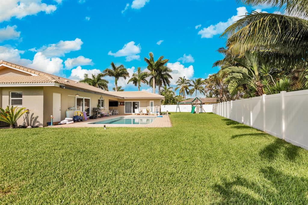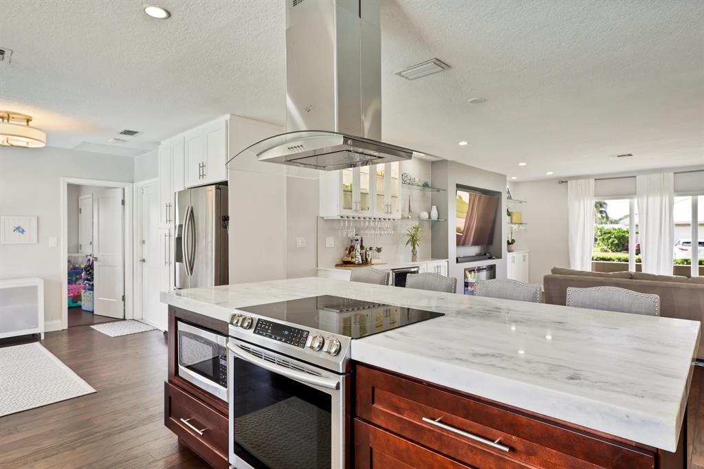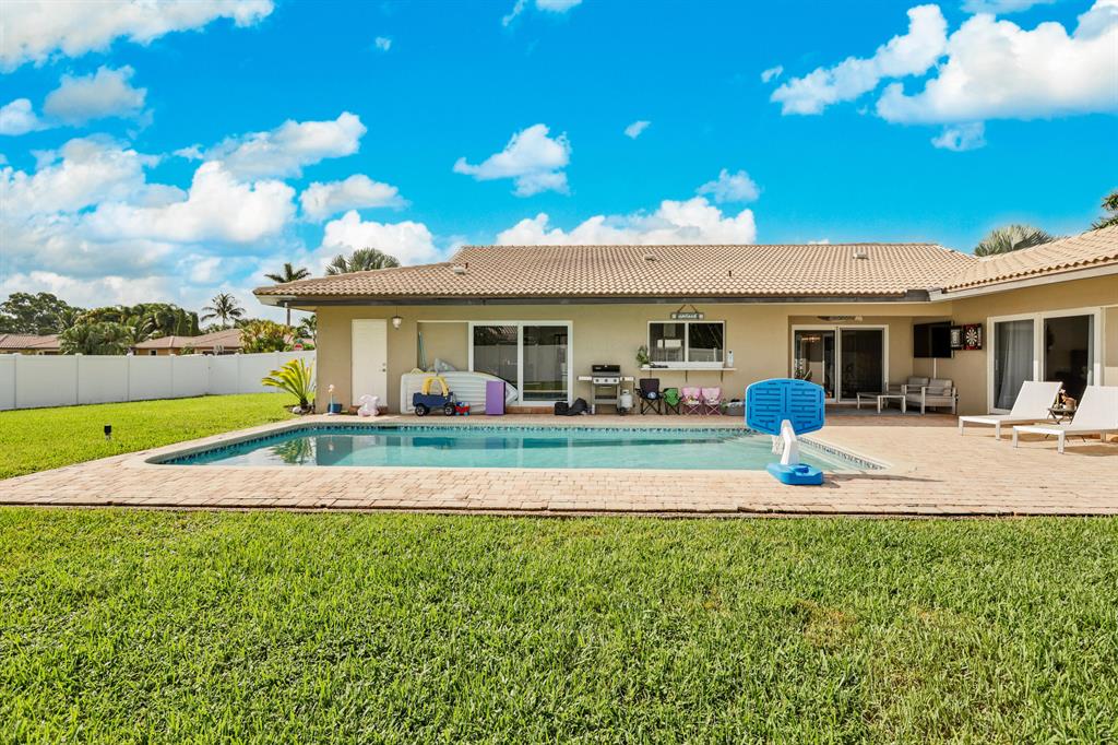 The home you have been waiting for...fabulous, open concept, recently remodeled 4/2 beauty on a park size corner lot of 15,073 sq.ft. Complete with all impact windows and sliders, updated salt water pool, PVC fence and Smart sprinkler system. Living area features custom bar w/wine fridge, wall unit with electric fireplace and expansive entertaining area. Kitchen has oversized island, stainless steel appliances, overlooking the pristine yard and pool. Large bedrooms with custom built closets and tastefully appointed bathrooms. Laundry room big enough to double as a playroom. Great schools, close to shopping and restaurants. This one has it all!