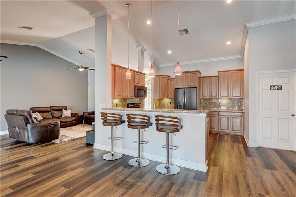 BUYER DENIED, INSPECTED AND APPRAISED!! Welcome home to this amazing waterfront/pool home in Isles of West Glen. This 3/2 home sits on a quiet cul-de-sac w/2 car garage & hurricane rated garage door, 2009 Roof, Newer 5 ton 18 Seer AC, ALL NEW Luxury Vinyl Plank flooring, vaulted ceilings w/recessed lights, crown molding thru-out, completely remodeled guest bath, updated eat-in kitchen w/SS appliances, granite counters, separate bar, wine cooler & decorative mosaic tile backsplash, large laundry room w/storage & spacious master suite boasts walk-in closet & separate tub/shower. Enjoy tons of natural light from the hurricane rated French doors that lead out to the screened-in pool/spa, covered patio & fenced yard. LOW HOA! **SUBMIT OFFERS TO: https://www.mlsoffers.com/makeoffer.php?id=39355
