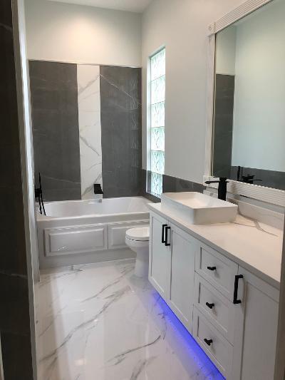 Completely remodel home in the beautiful River Walk Community. Kitchen modern self closing costume made with quartz counter tops, smart lighting features as well. Bedrooms modern look waterproof vinyl floors, master bathroom completely renovated, jacuzzi, calacatta stone on walls and floors which provides a modern yet sophisticated look. Hause is located at a cul de sac with beautiful view to the lake and bridges the community is known for. Spacious and screened patio with space for a pool. Riverwalk also offers 12 miles pedestrian walkway with cobblestone bridges, italian restaurant, hair salon, fitness center and many other activities offerend at the Town Center.
