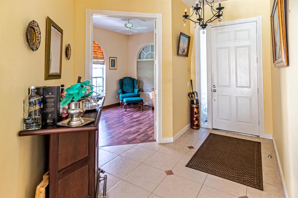 Gorgeous home on large landscaped lot. 3 Bedroom with Den. Screened Custom Built pool with Message Jets. on Canal, AC New in 2019. 18 inch Tile in main rooms. Custom built wall unit in Living room with plenty of storage cabinets. Hurricane accordian shutters throughout. A must see!