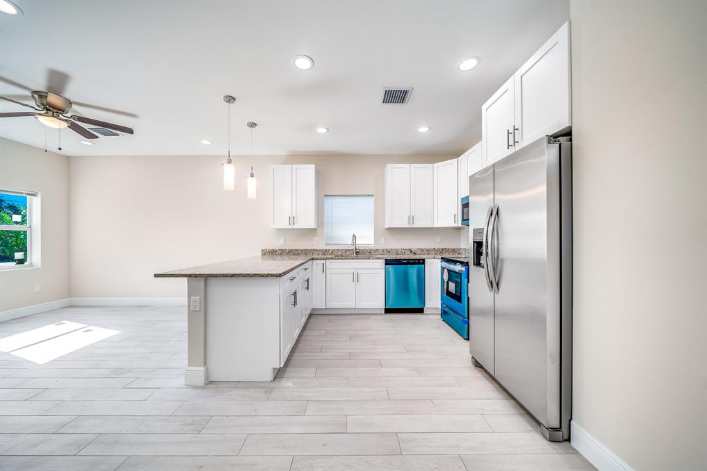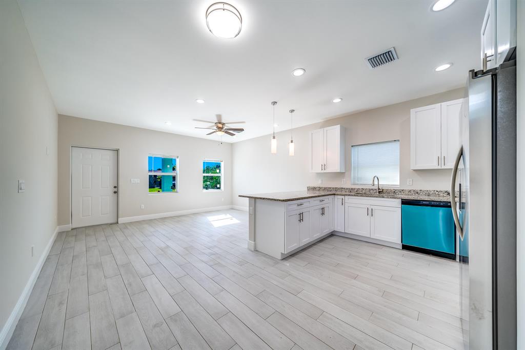 NEW CONSTRUCTION - READY TO CLOSE. CORNER LOT. Brand new 3/2 carefully designed; open layout, 9' ceilings, Italian plank tile, 42'' white shaker cabinetry, Dallas white granite stone, impact doors & windows, fenced backyard, LED lights throughout, tankless water heater, and so much more. Front covered entry and back patio with rear access. Enjoy the worry-free and benefits of a brand new house. Centrally located off major roadways, minutes from downtown West Palm Beach and surrounding areas. NO HOA. Best value in Palm Beach County!