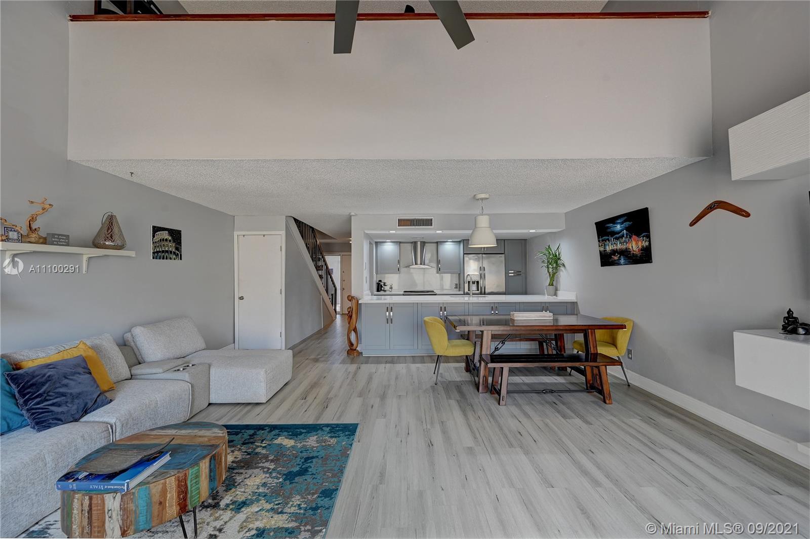 Come see this beautifully renovated townhome in the heart of Pembroke Pines. This corner townhome features a very open and inviting floor plan with 2 ample bedrooms (oversized master), 2 remodeled bathrooms, laminate wood flooring throughout, tastefully remodeled island kitchen that offers clean and modern finishes with cabinet lighting and beautiful quartz countertops, stainless steel appliances, fully built-in closets, plus a huge bonus closet under the stairs. The washer and dryer have been conveniently relocated to its own laundry space, which is a very unique feature of this home, too. Outside, you will enjoy the screened in and large private area for entertainment or walk about 150 feet to the community pool. 2 assigned parking spaces, lots of guest parking. A+ Schools. LOW HOA!