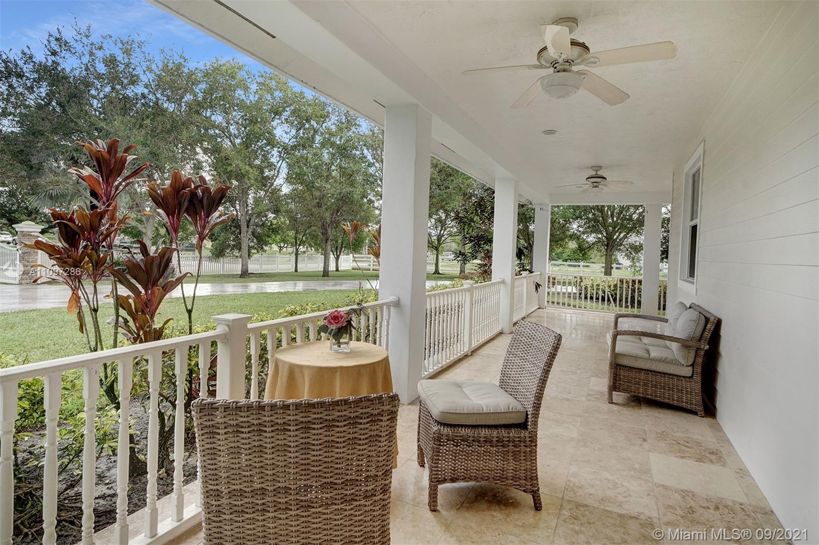 Modern Florida Living in prestigious Rolling Oaks neighborhood of Southwest Ranches with over 2 acres of land. Peace, Privacy & Tranquility redefined in this sprawling estate with beautiful pool area and large pond. Enjoy all-year perfect breezes from large porch and completely fenced-in property. This 2004 home features 5 total bedrooms (3 are en-suite) and 5 bathrooms, high-ceilings, crown molding, impact windows and doors, large gourmet kitchen with oversized eat-in island, generator, central vacuum system, 4-car garage, ample storage throughout and so much more. You can have your own soccer field or even horses - sky is the limit!
