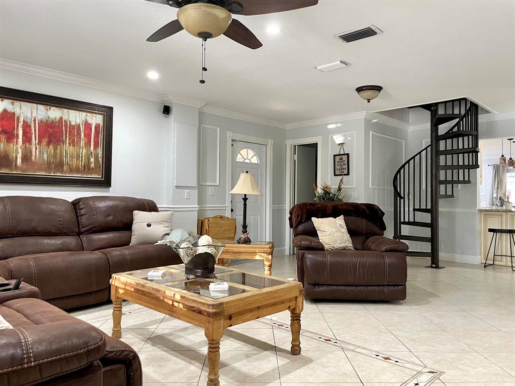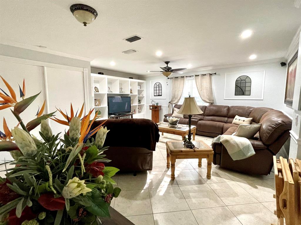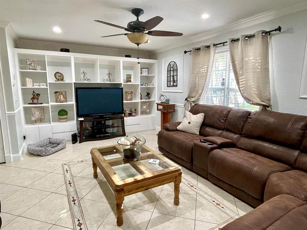 COME FALL IN LOVE with this 3/2.5 + office pool home that will leave you amazed. Walk into an oversized living room with French doors overlooking the pool. For the chef of the family this is the kitchen for you: large, spacious, gas stove w/ kitchen hood, microwave and wall ovens, large bar island and lots of cabinet space. Large master bedroom suite w/ huge walk in closet. Bathroom suite w/ separate toilet area and jetted tub separate from shower. Walk upstairs to your own private office space (furniture included). Backyard fit for family gatherings.Screened patio separate from the pool. Full detached cabana bath for all your pool guests. Crown molding, base boards, chair rails, and recess lighting throughout. Manicured lawn and palm trees. Paved driveway for up to 8 cars. WON'T LAST!