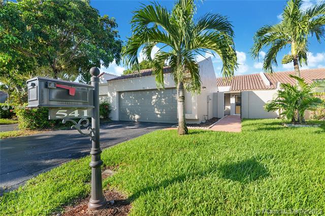 Beautiful and bright villa in the desirable area of Patio Village in Weston. Located on a Cul-De-Sac street, 3 bedrooms, 2 bathrooms with two car garage. Kitchen with upgraded cabinets and stainless-steel appliances, breakfast and laundry area. Recently painted throughout the house, new lighting, new blinds, new hurricane shutters, new water heather and food disposal. Porch in the front of the house and a screened back patio for barbecue and grill area in the back. Owners will also have access to the Bonaventure Town Center and facilities which include adult and kids pool, gym, club house, kids play area, tennis courts, bowling, basketball courts, indoor racquetball, roller skate rink. This villa in an outstanding location offers A Schools. No HOA approval needed and FHA Eligible.
