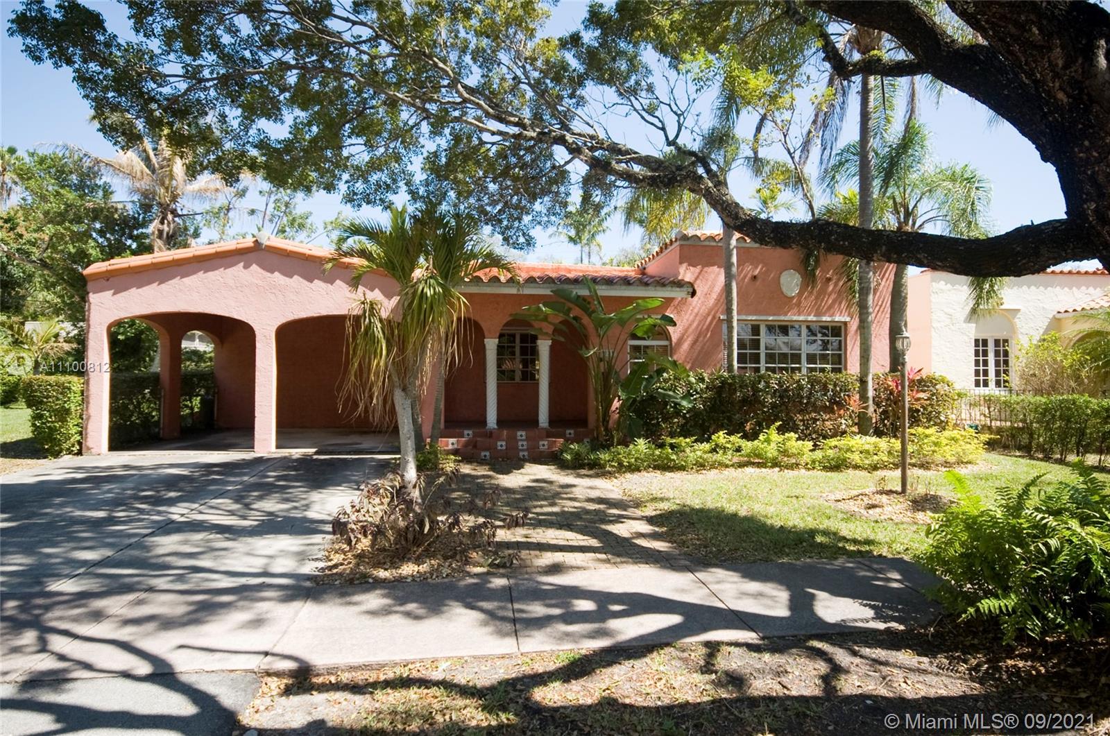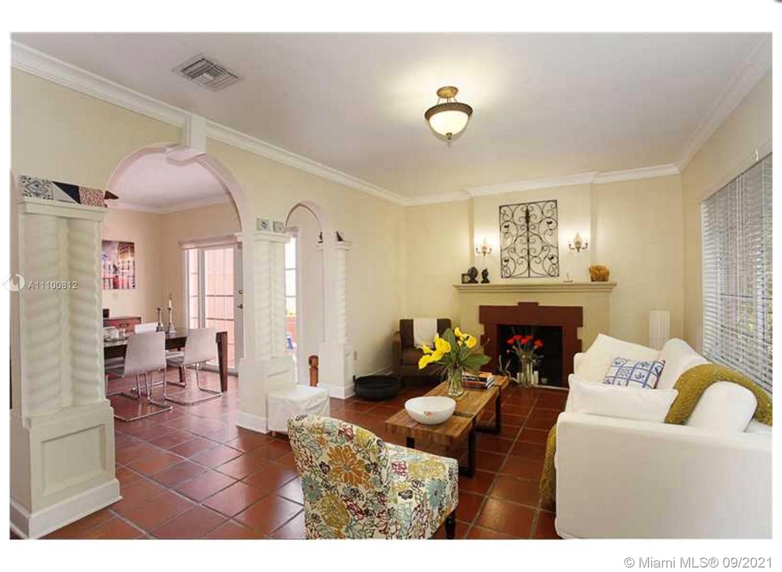 4/3 Mediterranean style home (2817 sq.ft) located in a quiet tree lined cul-de-sac street in Coral Gables, w/ fireplace and a large kitchen with a breakfast nook. The dining room & kitchen have direct access to the backyard yard. The home includes a spacious 1/1 cottage (with its own AC & electric meter) that is perfect for a home office, in-laws or a nanny. New roof in 2021. 10k sq. ft. lot might allow for a pool build-out.