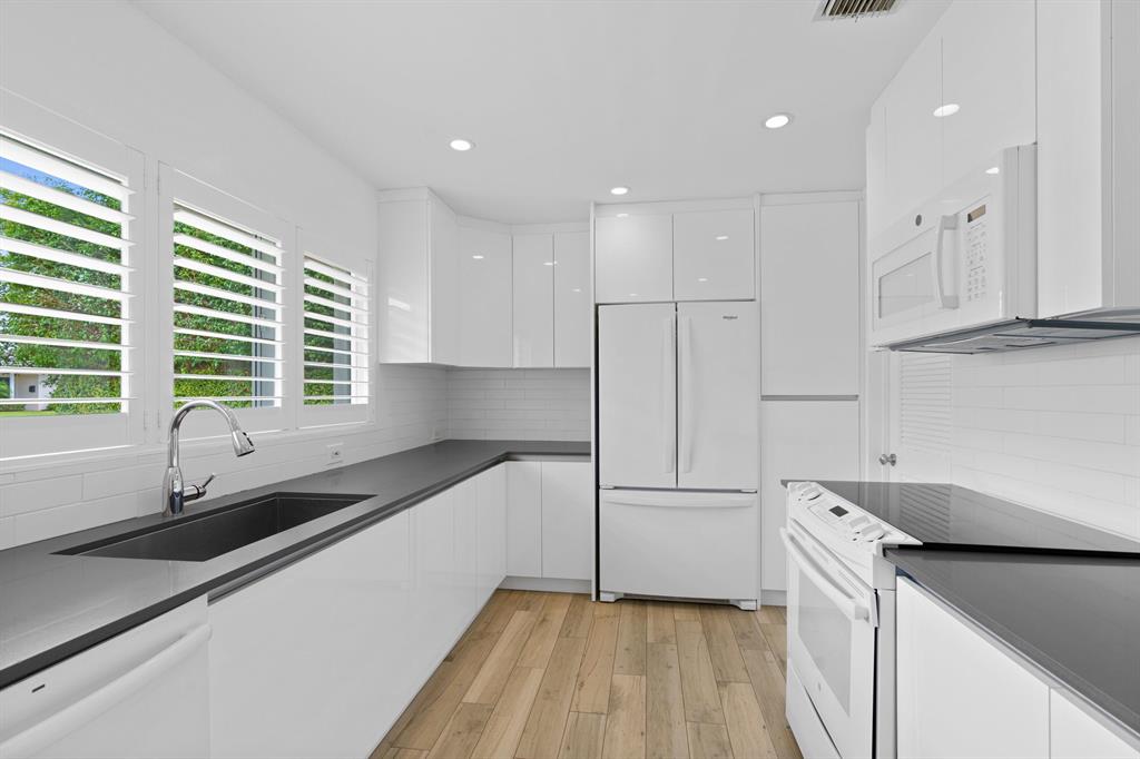 Nestled in the heart of East Boca, you will find this fully updated 2 bedroom 2 full bath home located on a quiet street in the highly desirable neighborhood of Boca Square. This mid-century modern home boasts an open floor plan with tile flooring throughout. The kitchen and bathrooms have been fully updated and modernized. All of these upgrades are just under 2 years old. Home features include: Tons of natural light, ALL PGT impact windows and doors, newer AC, quartz countertops, subway tile, custom drapes and plantation shutters. Enjoy the outdoor-indoor living lifestyle with sliding glass doors that lead out into a screened-in patio. Beyond that, there is a spacious fenced-in backyard. The backyard is lushly landscaped, very private, and great for entertaining. Welcome home!