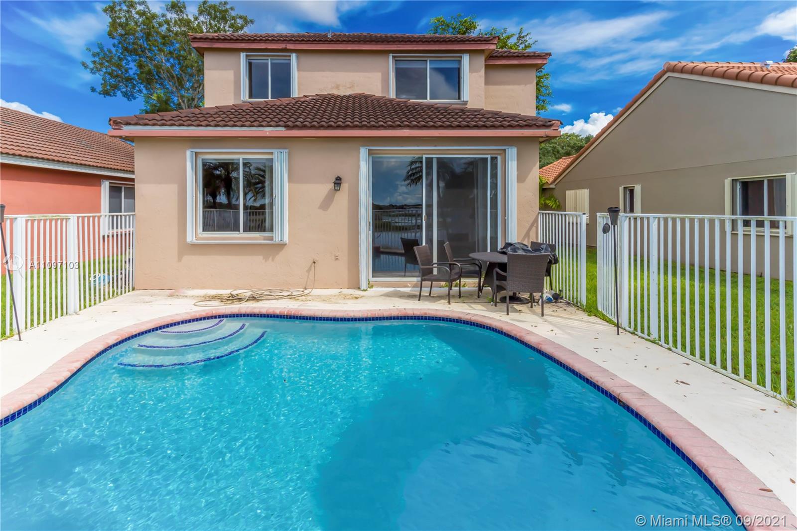 AMAZING 4 BEDROOM, 2 1/2 BATH, FENCED POOL HOME WITH LAKE VIEW! REMODELED KITCHEN FEATURES GRANITE COUNTER TOPS, BEAUTIFUL TILE BACKSPLASH & NEWER STAINLESS STEEL APPLIANCES. TILE DOWNSTAIRS WITH WOOD ON THE STAIRCASE AND UPPER LEVEL. ALL BATHROOMS HAVE BEEN UPDATED. INDOOR LAUNDRY ROOM WITH NEWER WASHER/DRYER. DESIGNER CROWN MOLDINGS EVERY WHERE INCLUDING WINDOWS! NEW LED OUTDOOR LIGHTS WITH LIGHT SENSORS. NEW BELT DRIVEN GARAGE DOOR OPENER WITH BACKUP BATTERY! NEW POOL PUMP. NEW WATER HEATER. NEW POOL DIAMONDBRITE. ACCORDION SHUTTERS. GREAT COMMUNITY, WITH A+ WESTON SCHOOLS, VERY EASY ACCESS TO HIGHWAY. COMMUNITY PLAYGROUND AND COMMUNITY POOL IN ADDITION. ALL BEDROOMS UPSTAIRS.