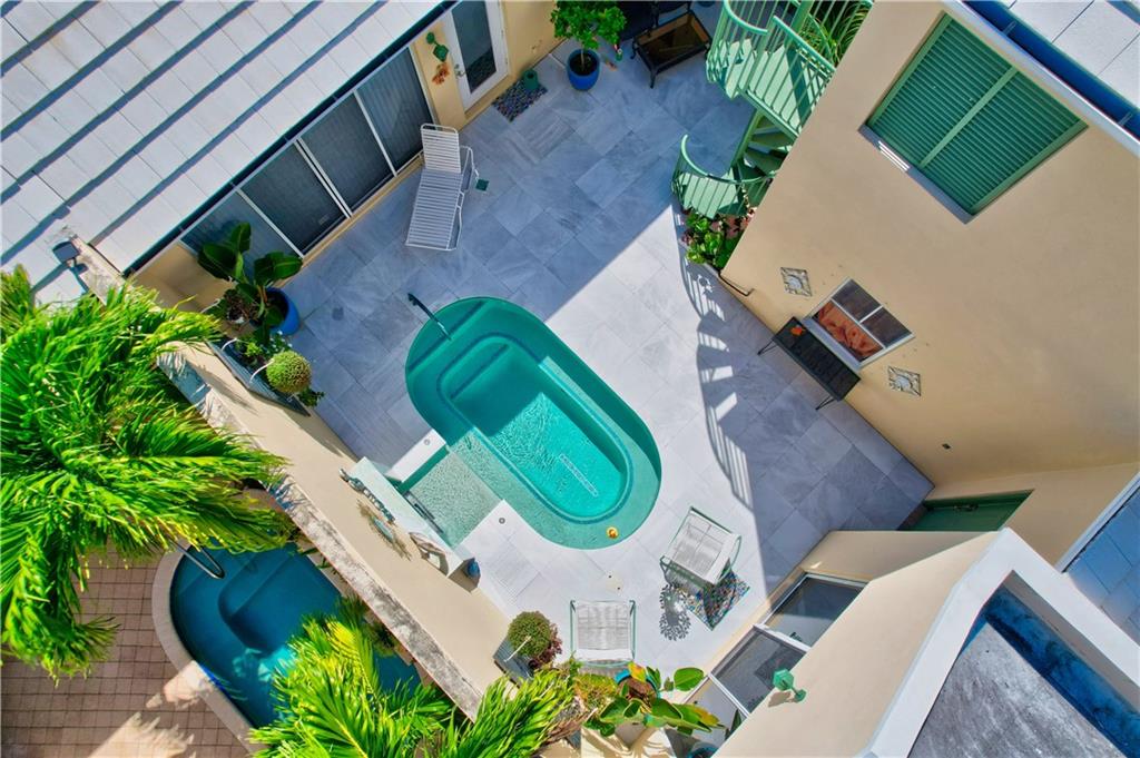 Come experience this luxurious piece of paradise! You’ll immediately fall in love in the courtyard of this COMPLETELY remodeled home when you see the private pool surrounded by white marble decking. Enter the main home where you’ll find volume ceilings, gorgeous rectified porcelain flooring, a modern kitchen with quartz counters & the large primary bedroom suite, with 2 closets & a Kohler 100 gallon soaking tub with heated back. Head through the courtyard to the guest house which features a fully renovated room & bathroom. Finally, take the spiral staircase to the 3rd bedroom (above the 2 car garage), featuring a kitchenette & full bath. Enjoy sights of holes #11 & 12 from the back patio. Country Club membership NOT required. HOA maintains lawn, exterior paint, basic cable & landscaping.