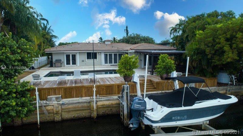 Renovated beautiful modern house w/ the finest taste & materials. Great floor plan -separate master w/ French doors to pool & patio area, formal dining & custom eat-in kitchen w/ stainless steel appliances & natural gas. New baths w/ Italian natural stone/glass mosaic .Heated pool & deck,2-car gar, travertine paver driveway, 2 high energy efficient a/c units. Waterfront Home on a large lot almost 10,000 sqft adjacent to a green area. Located on luxurious exclusive and private gated community Sans Souci Estates. Resort like deck Pool area with sandy tropical Water views and 75ft dockage on a deep wide canal, no fixed bridges to open Ocean at just 10 minutes Equal, with boatlift up to 30,000 lbs boat.