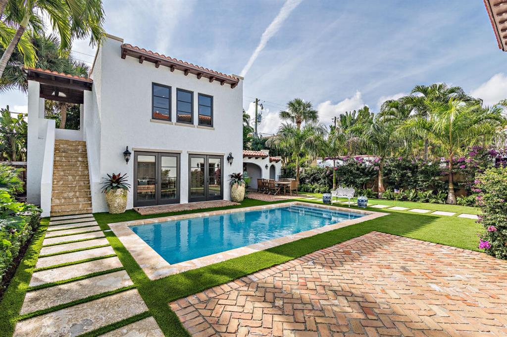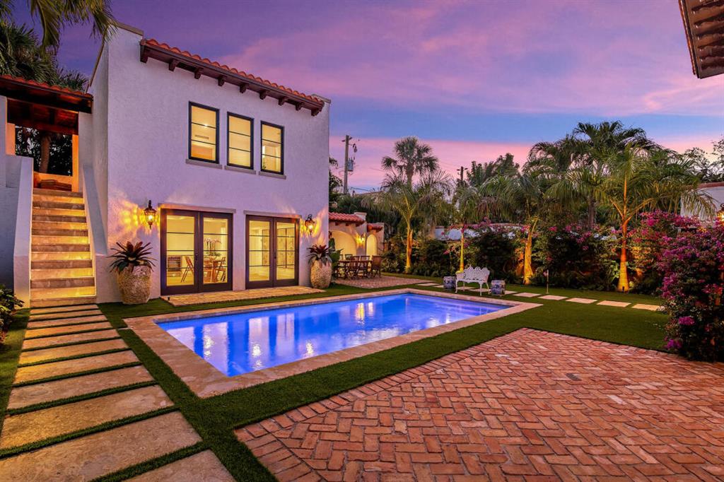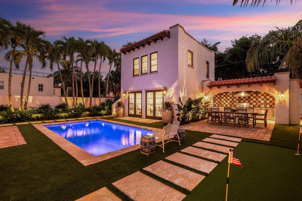 Beautifully remodeled two-story home in historic Prospect Park. Few blocks from El Cid, beautiful property being completely renovated. Almost 2 years under construction with a brand new roof, new hurricane windows, tankless water heaters and generator! Restored back guest/pool house, custom designed kitchen with Thermador Appliances. Formal dining room, formal living room with working fireplace, original refinished wood floors and old fashioned sunroom. Original Portes-cochere, 3 bedrooms upstairs, a third small staircase to the tower with 2.5 baths. Beautifully Remodeled bathrooms, custom woodwork, 8 foot doors, with custom closets. Back house with downstairs pool house or studio with full bath and upstairs 1 bedroom apartment with bedroom and bath. Beautifully landscaped with barbecue.