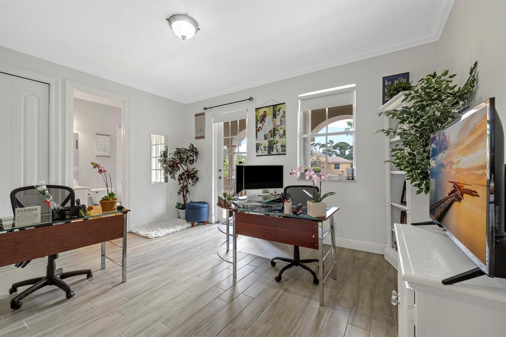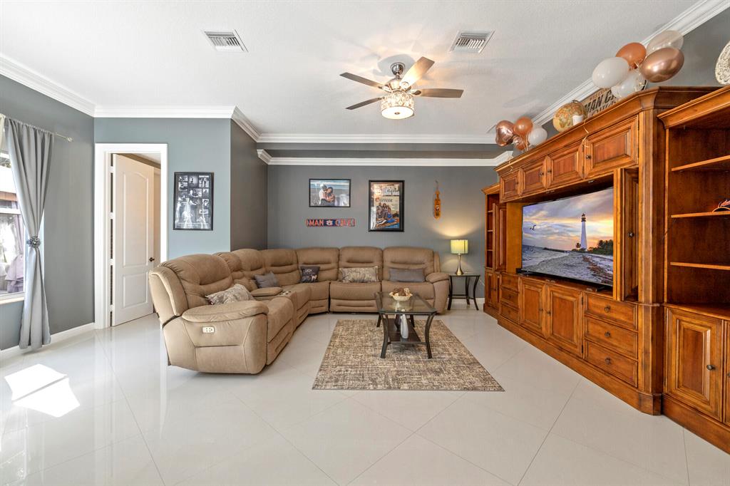 Welcome to Worthington Estates! This gorgeous and quaint community made of just 81 homes is located off of West Okeechobee Blvd. Step into the ever spacious 4,500 square feet under air estate. The stunning grandiose entrance welcomes you with a custom staircase and luxurious crystal chandeliers. This five bedroom, four and a half bathroom home features one master bedroom downstairs, another spacious bedroom downstairs that can be used as an office, playroom or other. Downstairs you will also find a formal living area with soaring high ceilings, one formal dining area, open kitchen leading to family room and one huge bonus living area AKA ''Man Cave'' with its own half bathroom all with crown molding throughout. As you head upstairs you will be greeted by a spacious lo